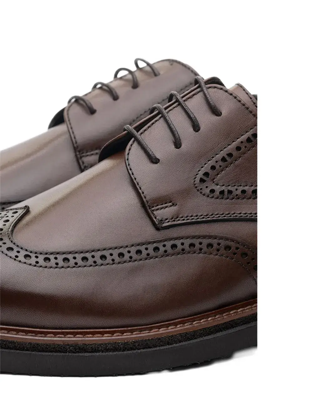 Коричневые дерби с перфорацией, шнуровка, круглый носок, низкий каблук