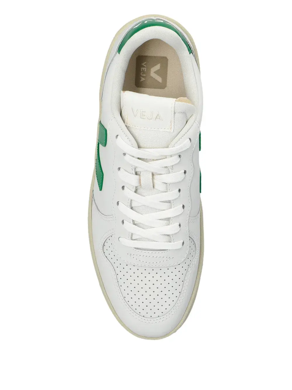 Белые с зеленым, шнуровка, перфорация, плоская подошва, логотип на пятке