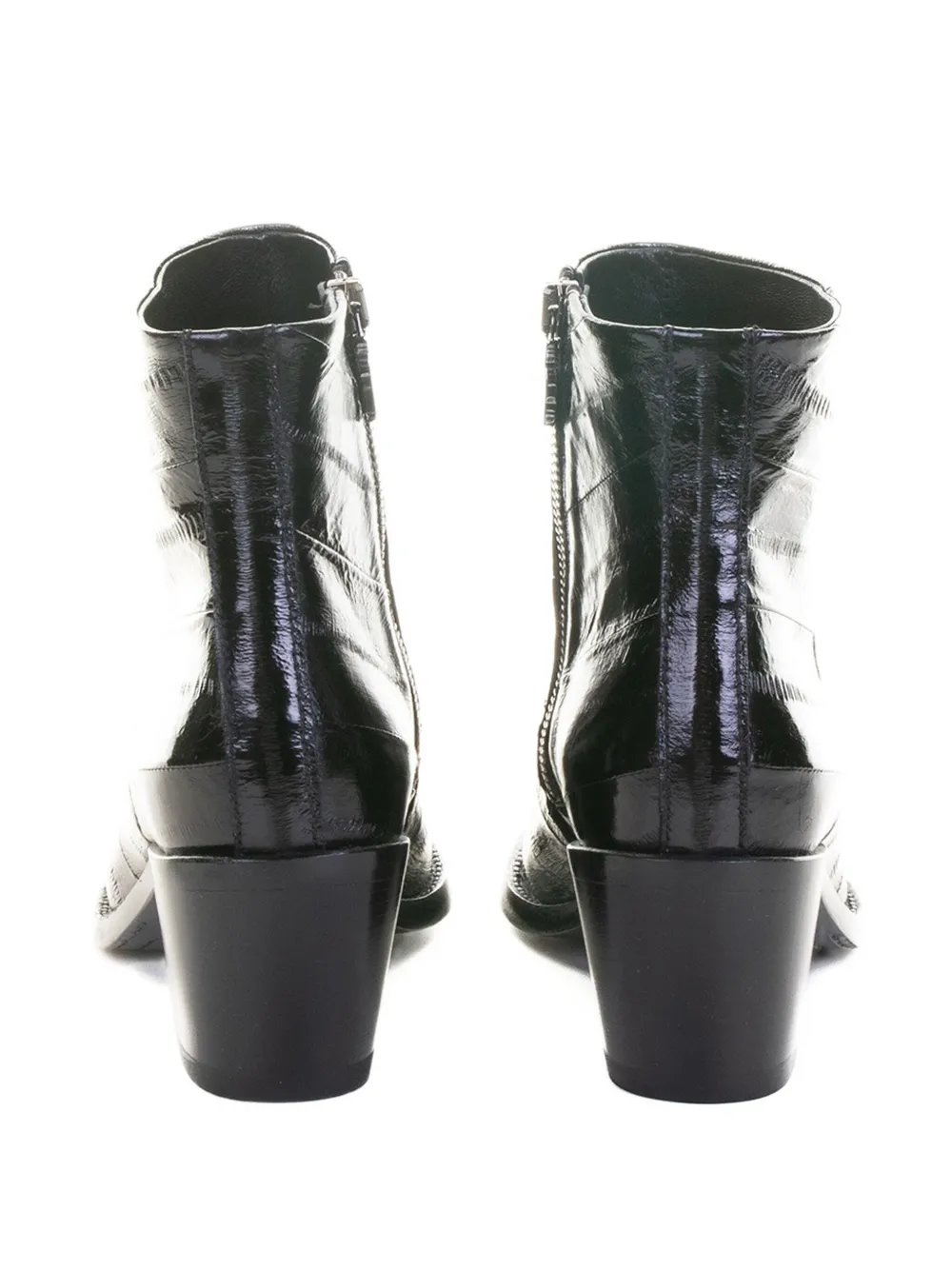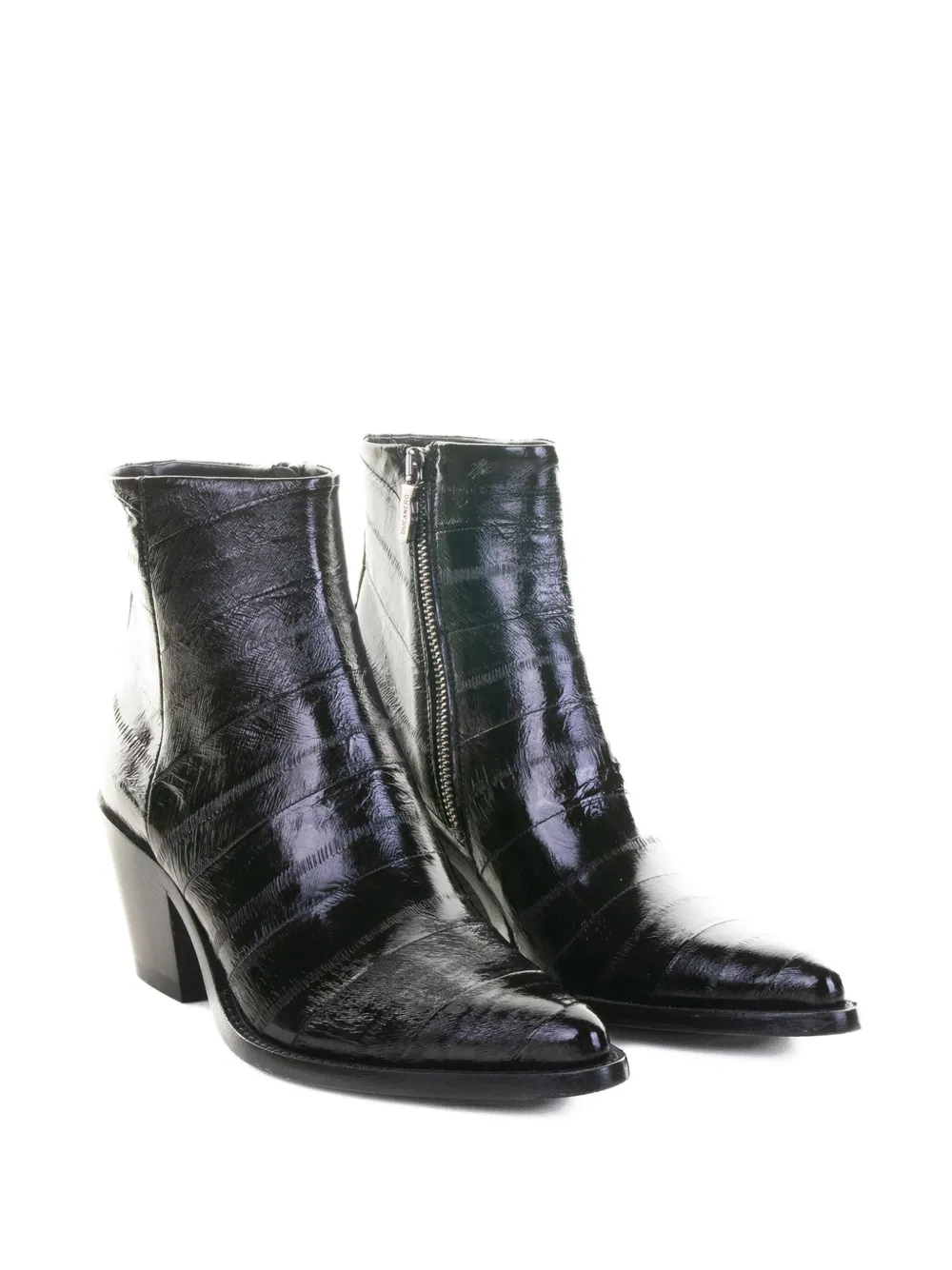 Черные кожаные туфли с заостренным носком на квадратном каблуке и застежкой-молнией