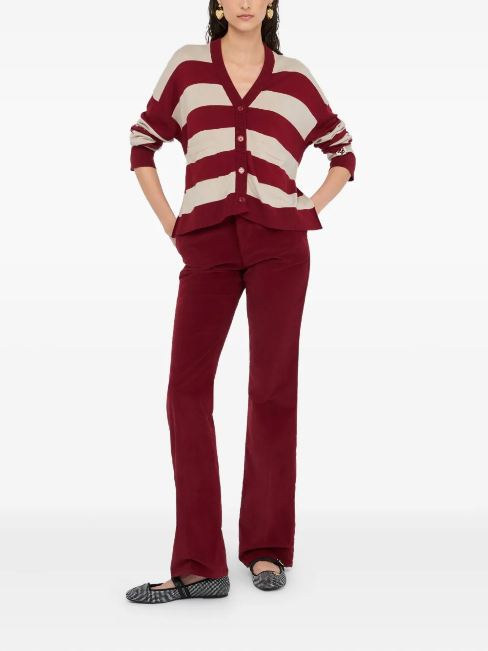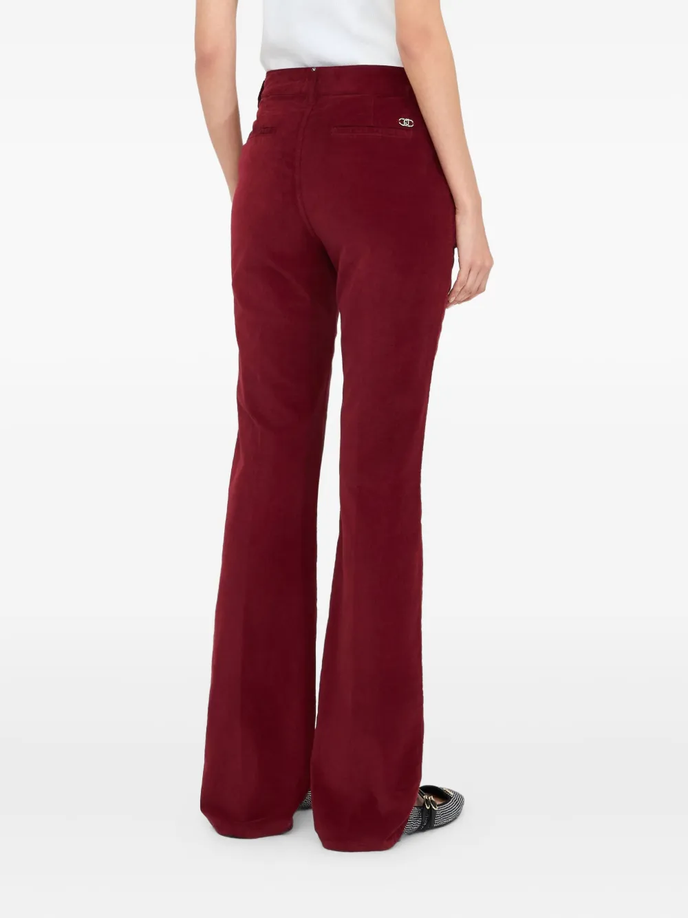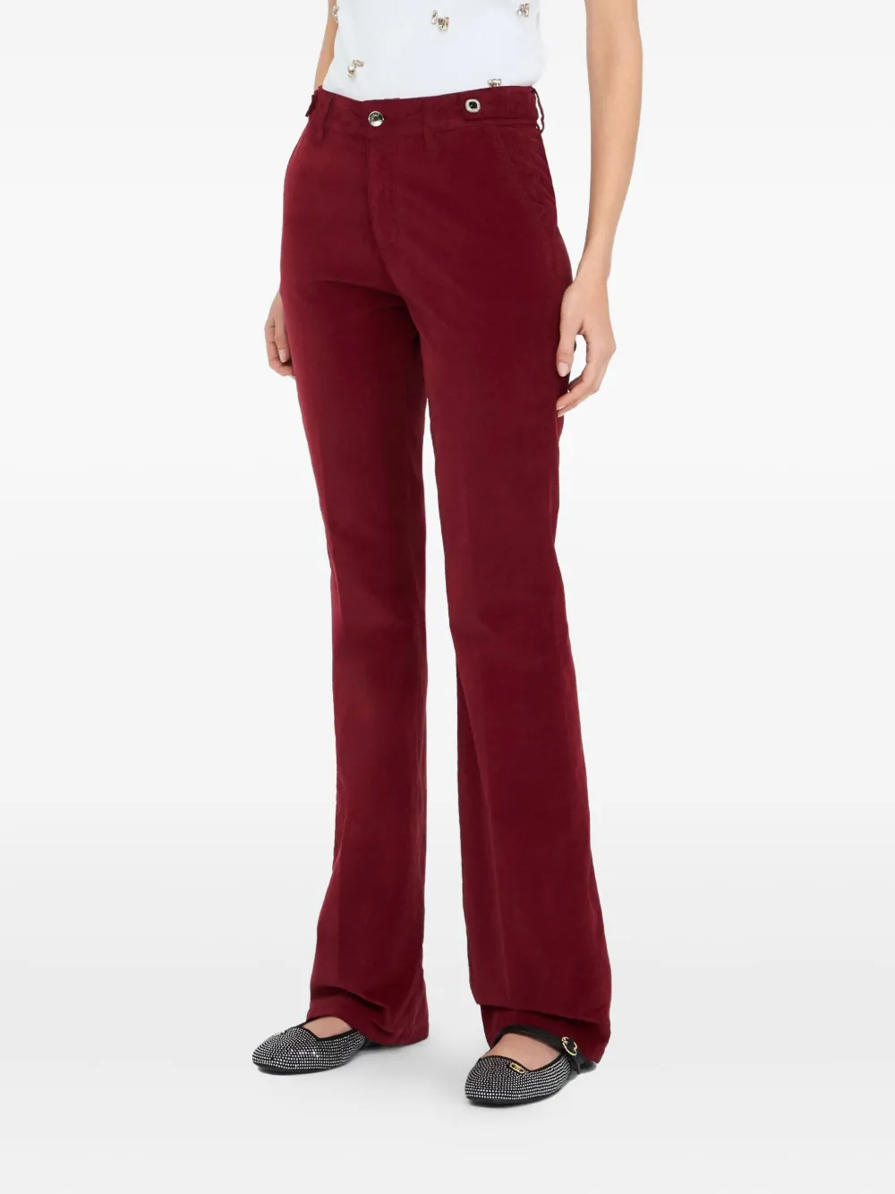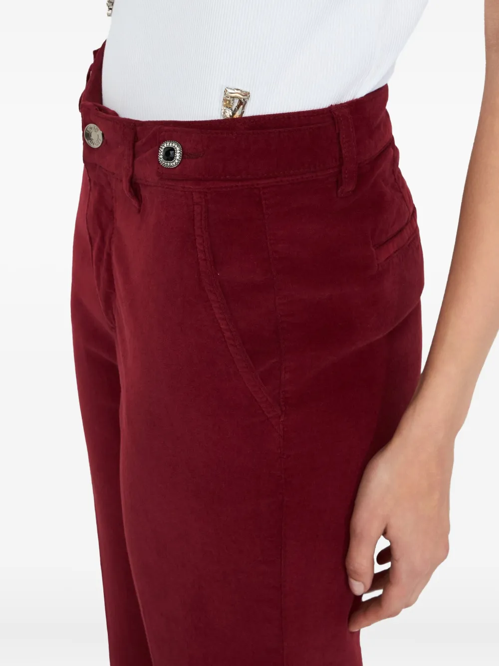 Темно-красные бархатные брюки-клеш с текстурой, украшенные драгоценными пуговицами, карманами и шлевками для ремня
