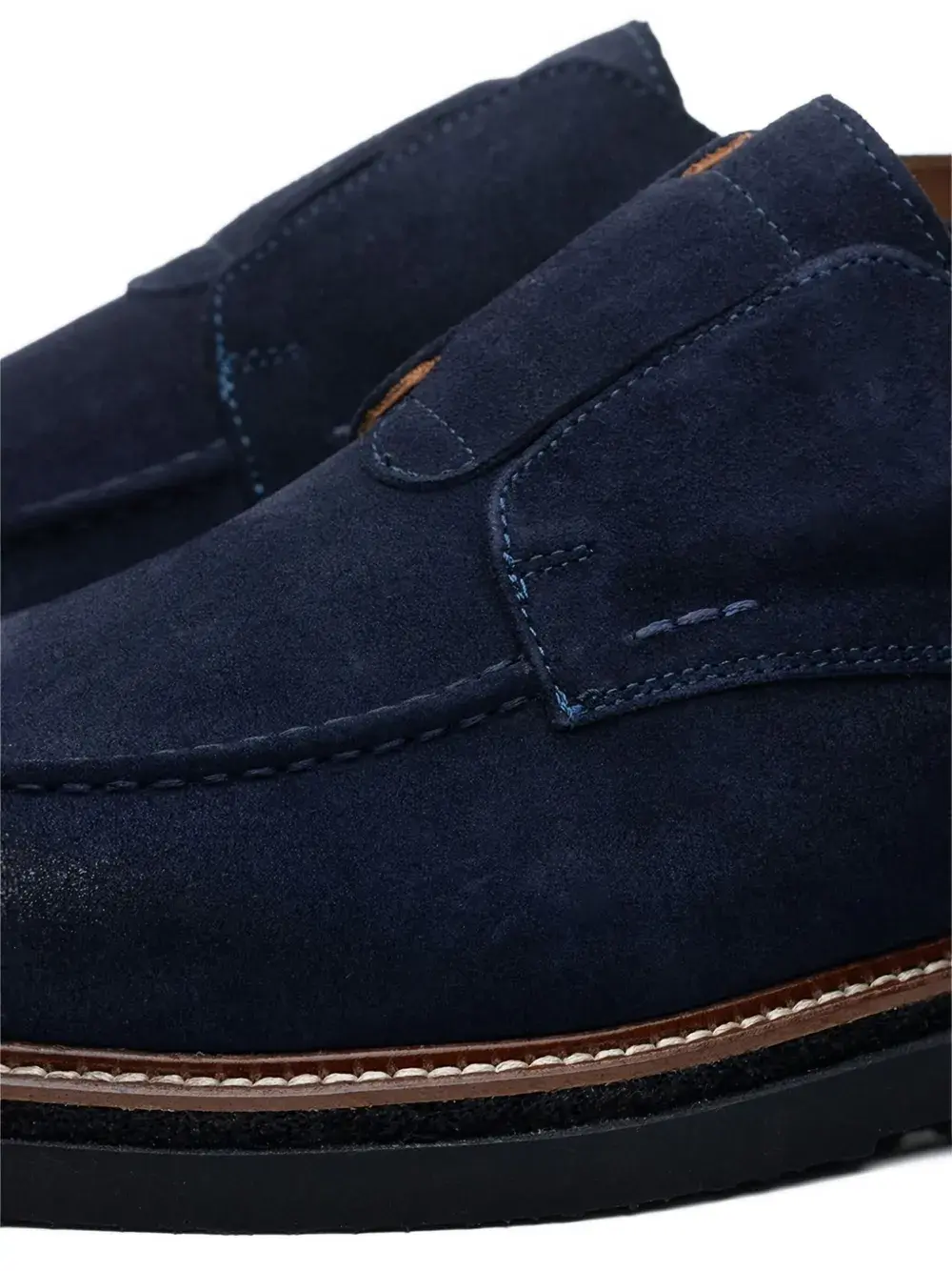 Синий туфель с панельным дизайном, декоративной строчкой, закругленным носком, без шнуровки