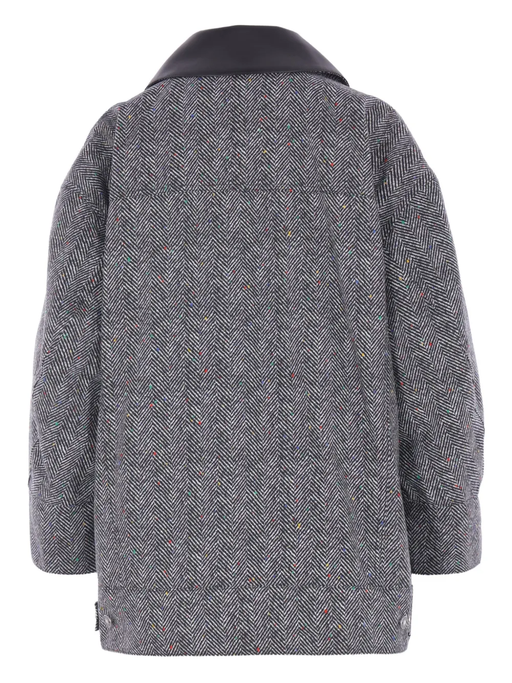 Черный кожаный воротник с узором "елочка", застежка на пуговицы, нагрудные карманы, манжеты на пуговицах