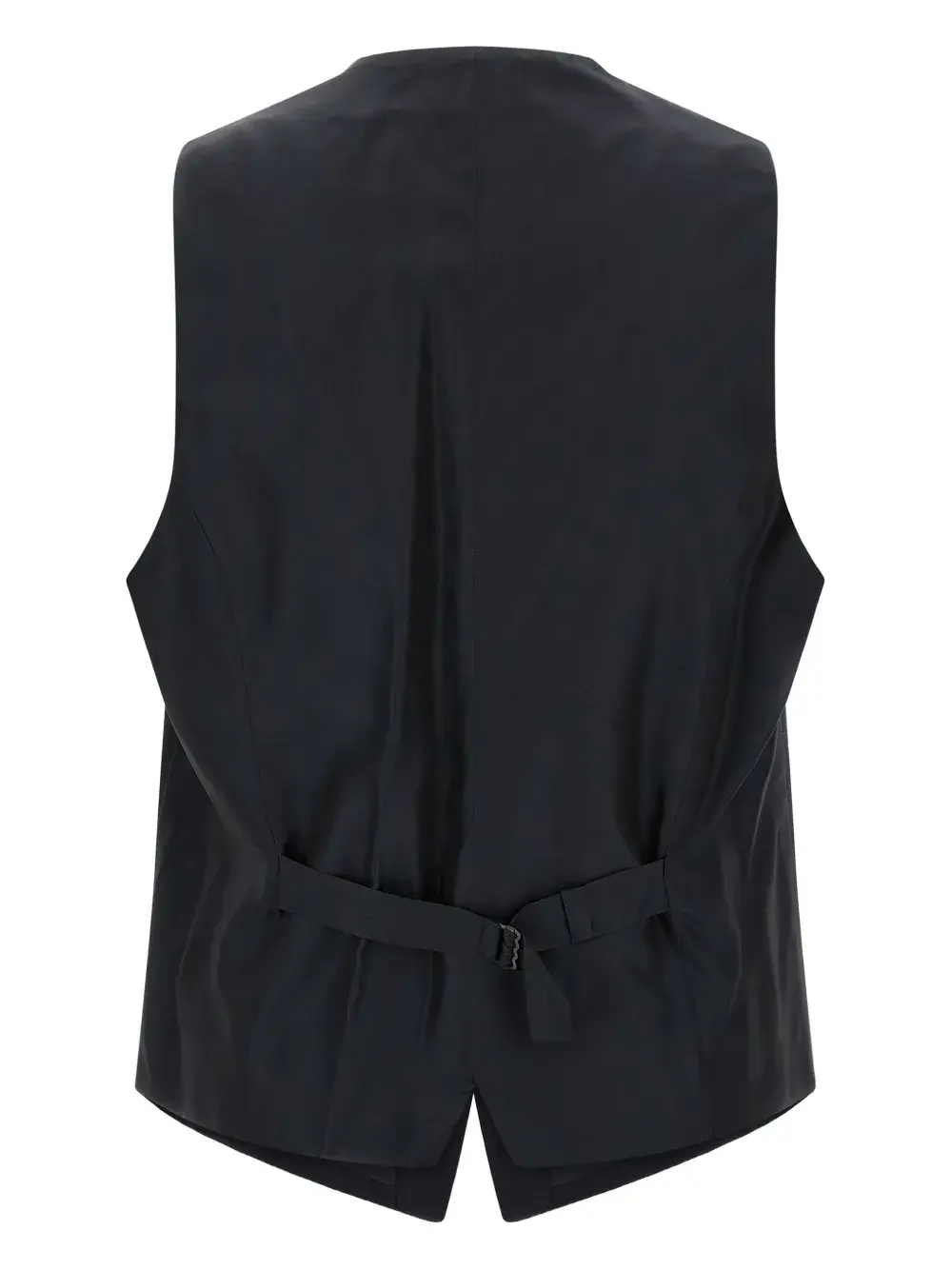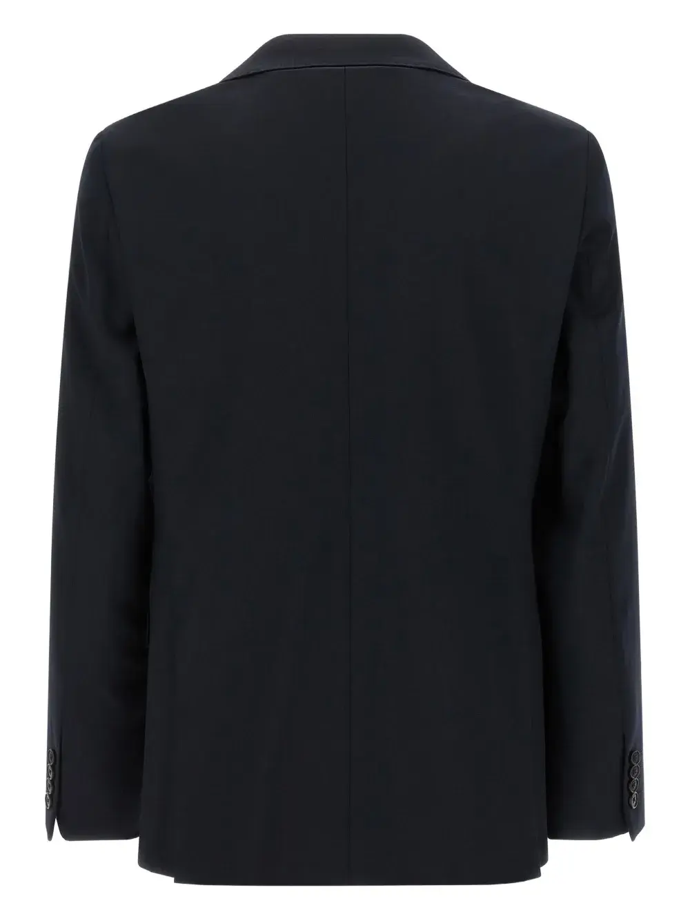 Синий цвет, съемная металлическая брошь, накладные карманы, регулируемый ремешок сзади, застежка на пуговицы спереди