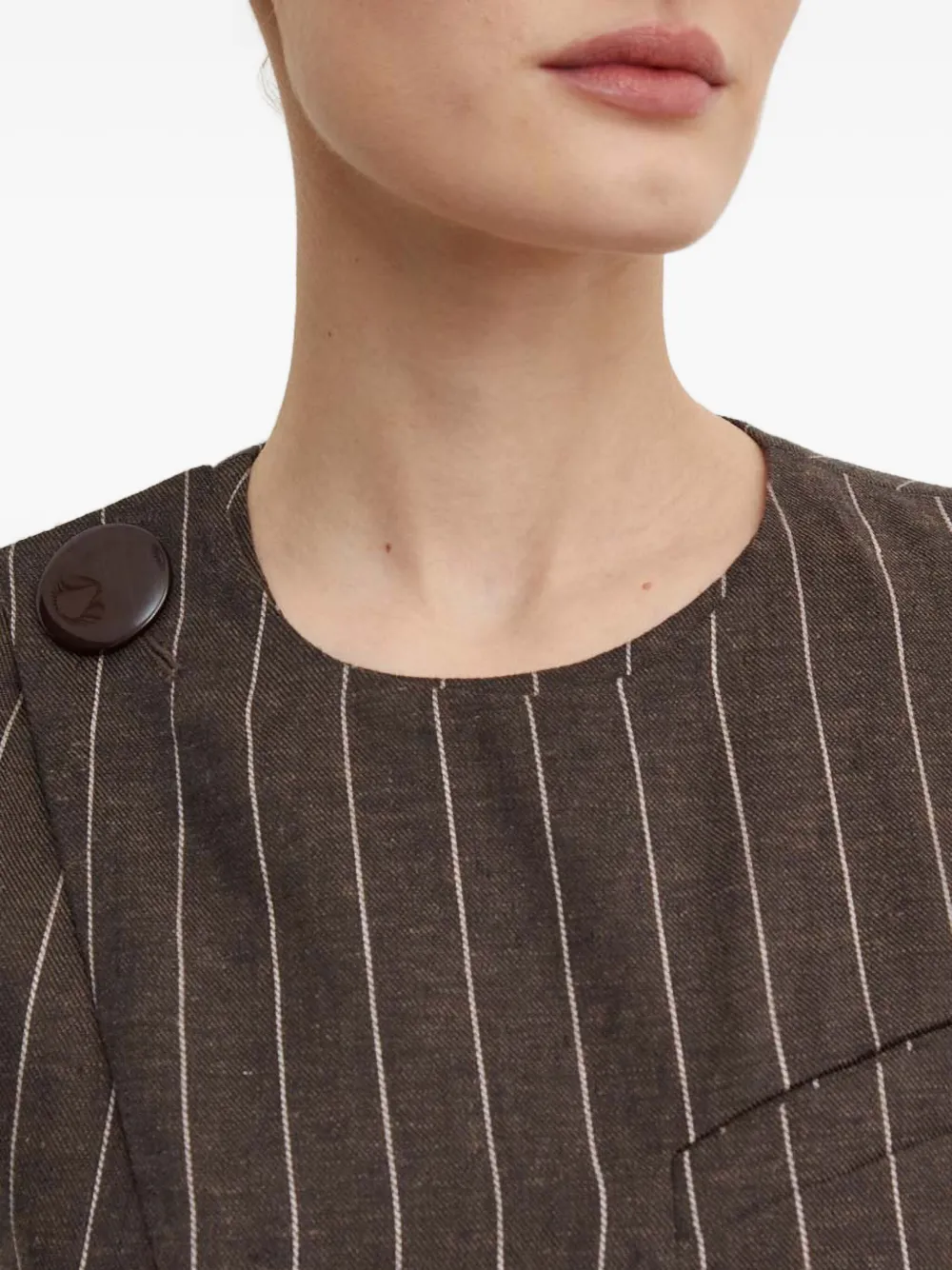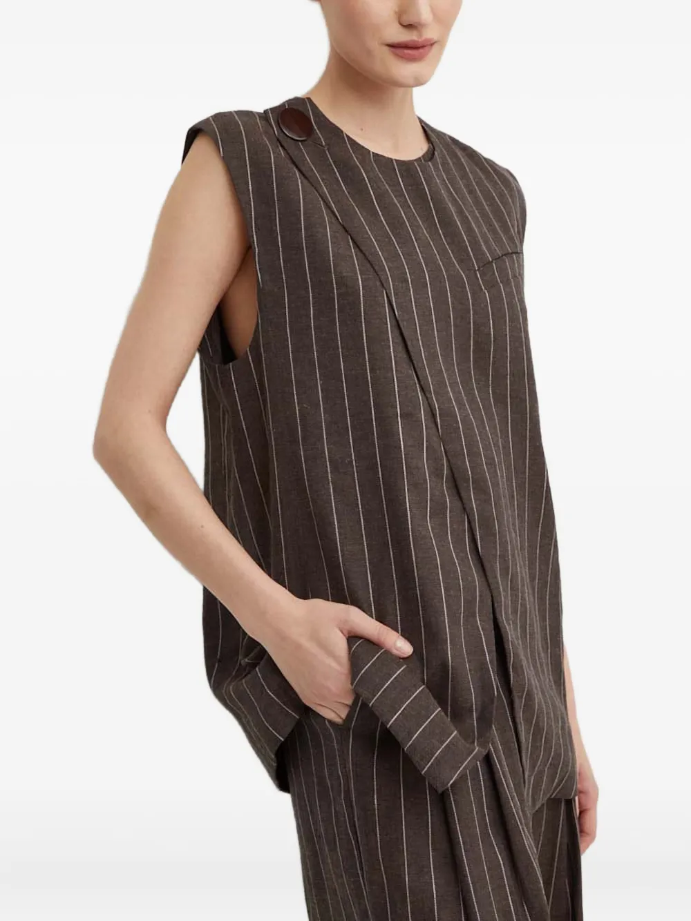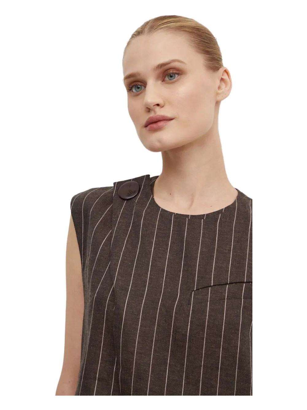 Коричневый жилет в полоску с пуговицами, без рукавов, с нагрудным карманом и круглым вырезом