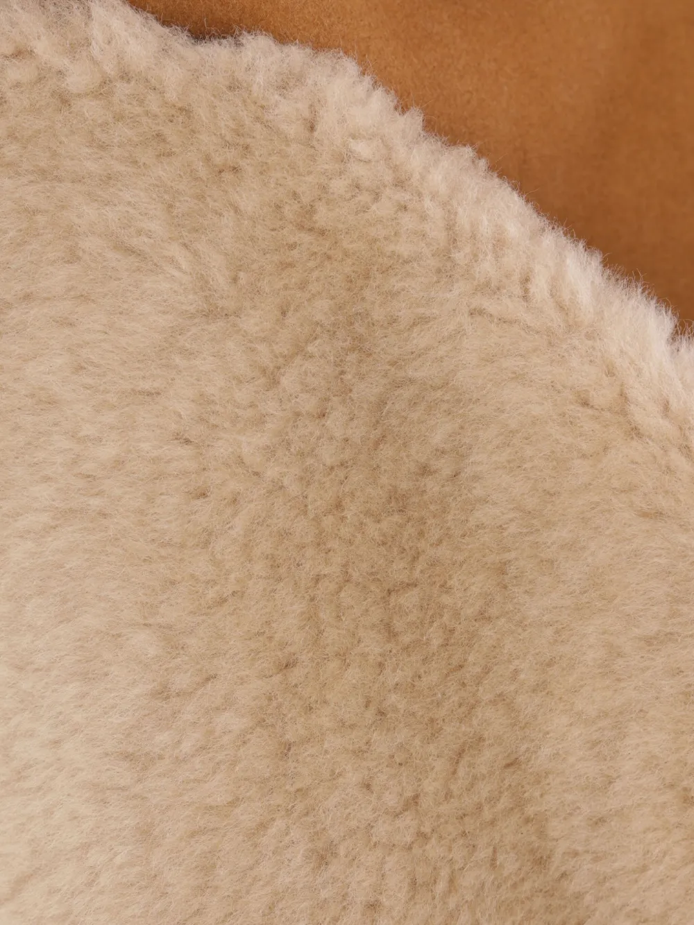 Нейтральный цвет, отделка из мутона, застежка-тогл, панельный дизайн, передние карманы, воротник