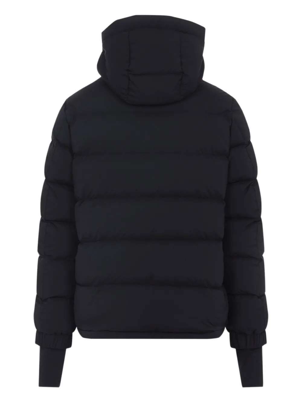 Черная стеганая куртка с капюшоном, застежкой на молнии, логотипом и ребристыми манжетами