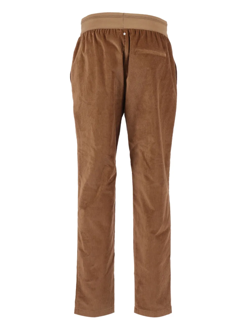 Коричневый вельвет, фактурная ткань, эластичный пояс, завязки, задний карман