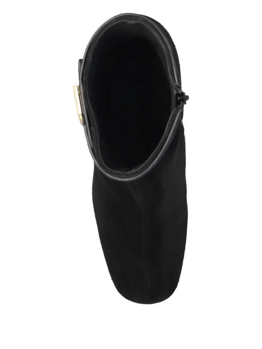 Черные ботильоны на блочном каблуке с боковой молнией, золотистой фурнитурой и ремешком на щиколотке