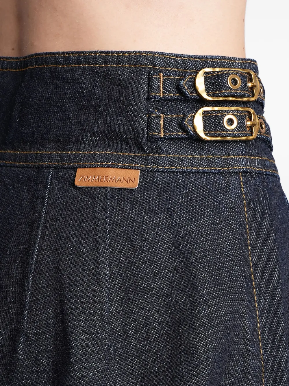 Джинсовые кюлоты с пряжкой и плиссировкой Zimmermann, синий