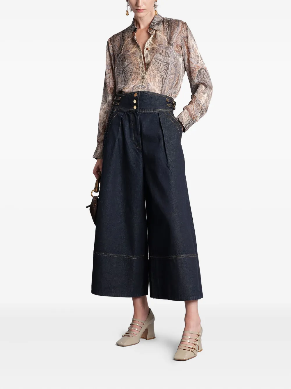 Джинсовые кюлоты с пряжкой и плиссировкой Zimmermann, синий 87 126₽