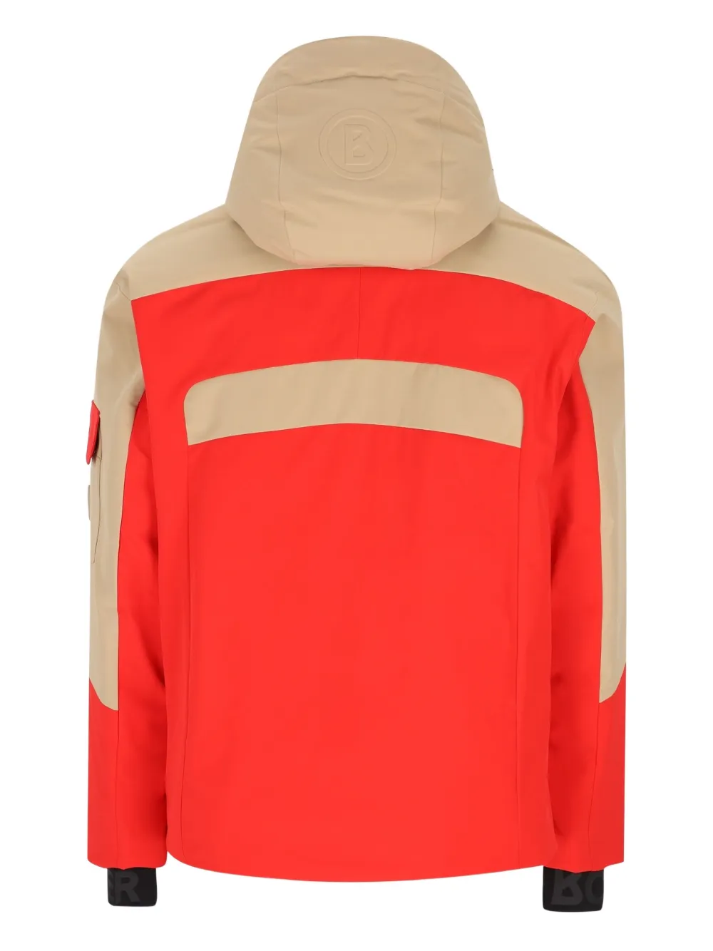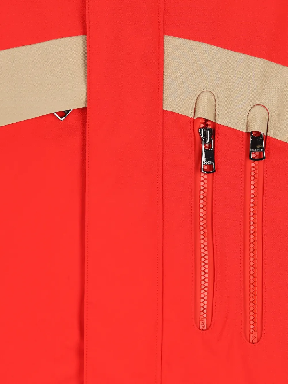 Красная куртка с панельным дизайном, капюшоном, застежкой-молнией, несколькими карманами на молнии, нашивкой с логотипом