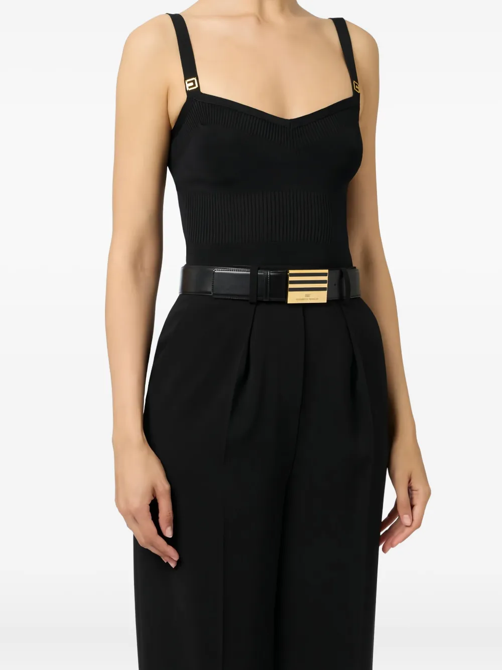 Ремень с пряжкой и логотипом Elisabetta Franchi, черный