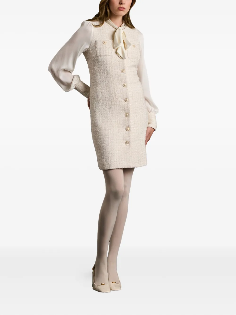 Мини-платье из твида с бантом на шее Weill Paris, белый