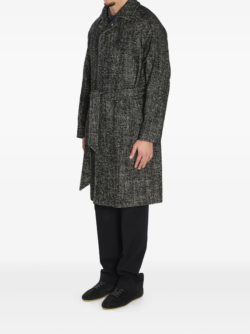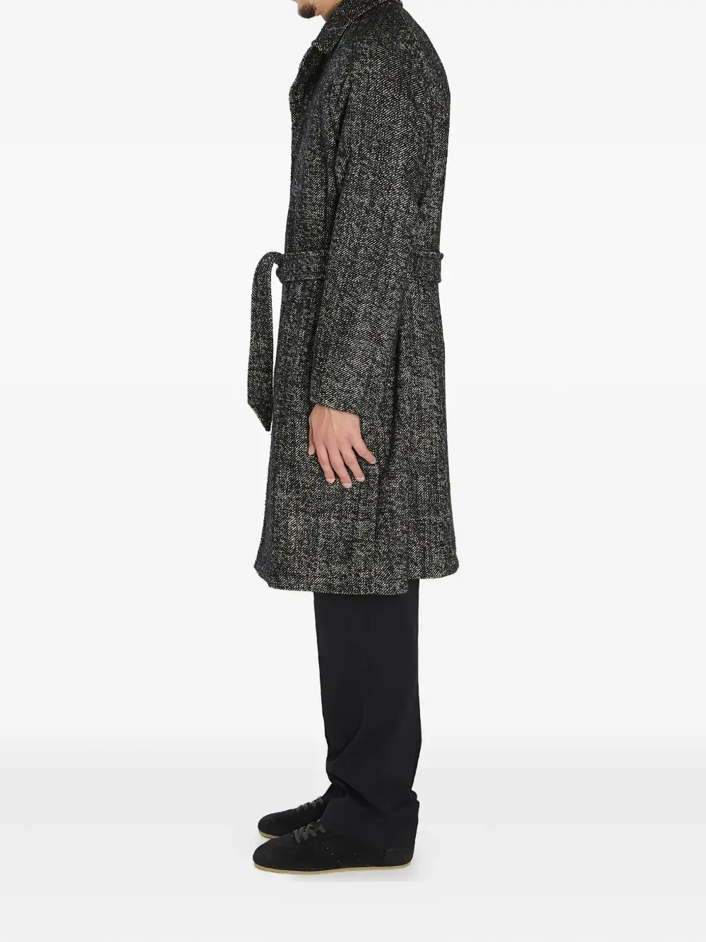 Черные лацканы с вырезом, рукава-реглан, съемный пояс