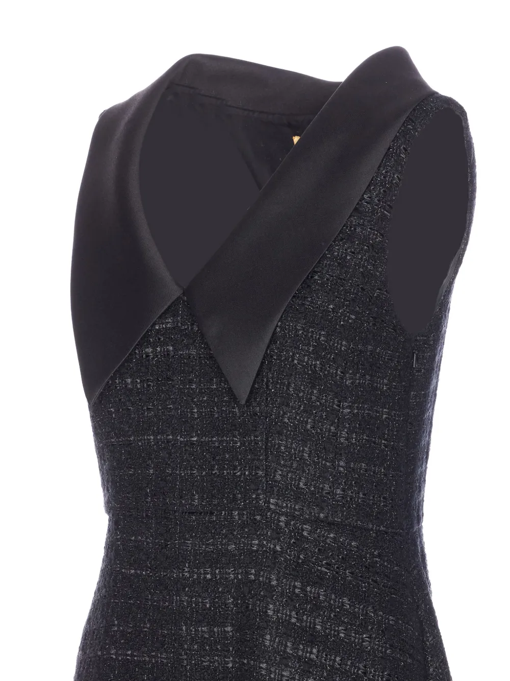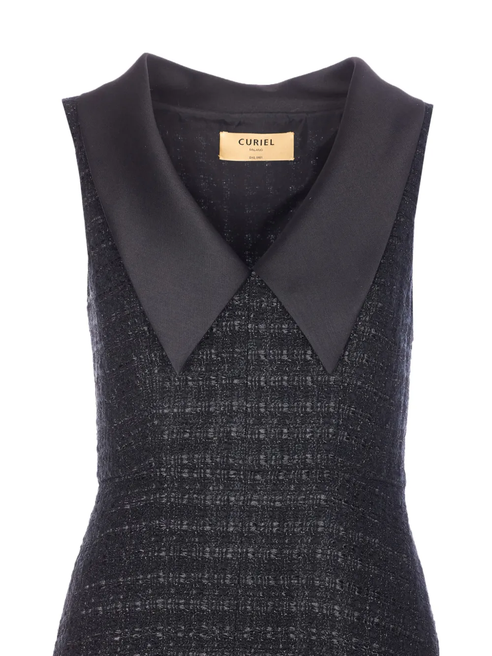 Платье миди с эффектом букле и V-образным вырезом Curiel, черный
