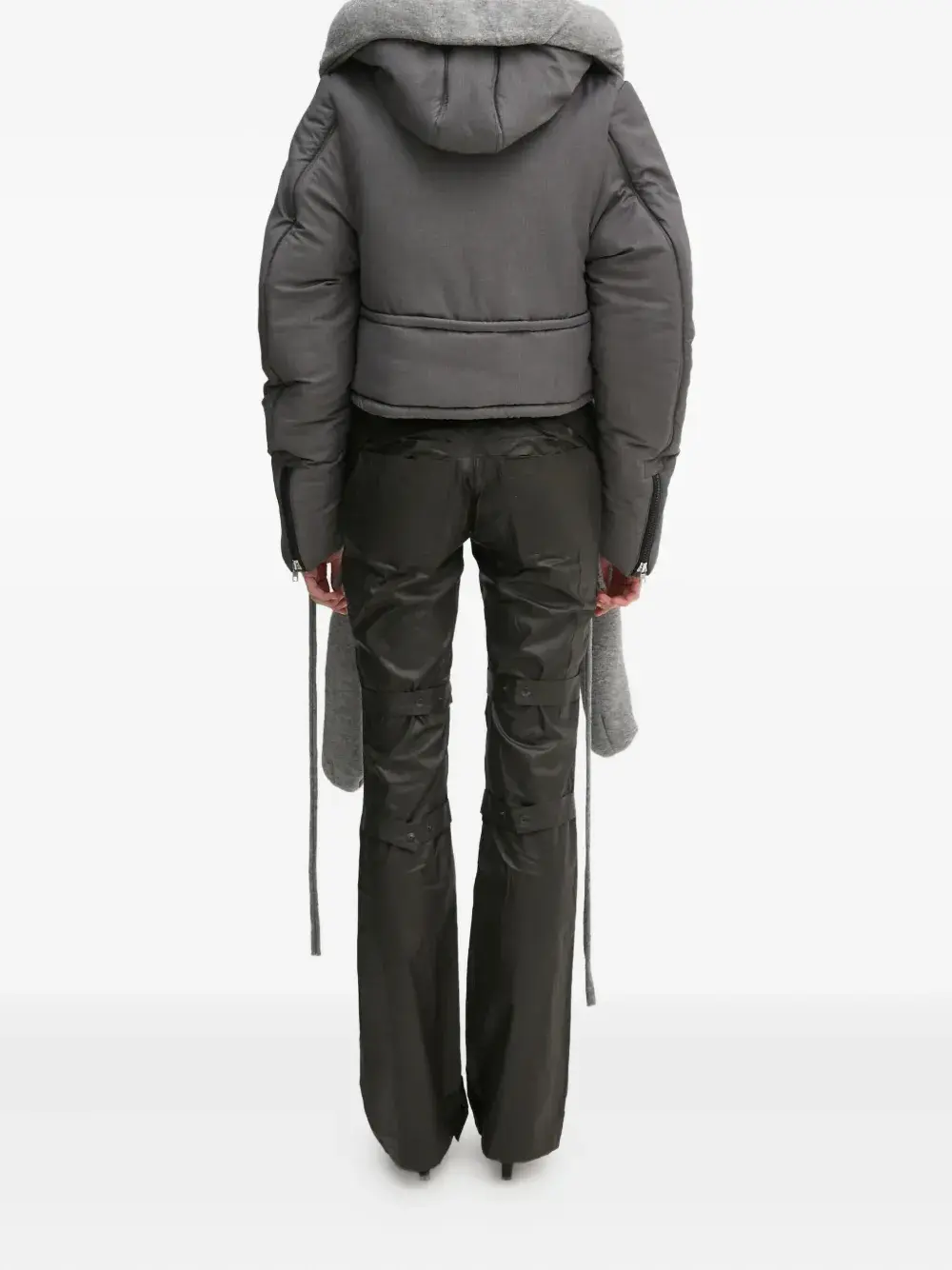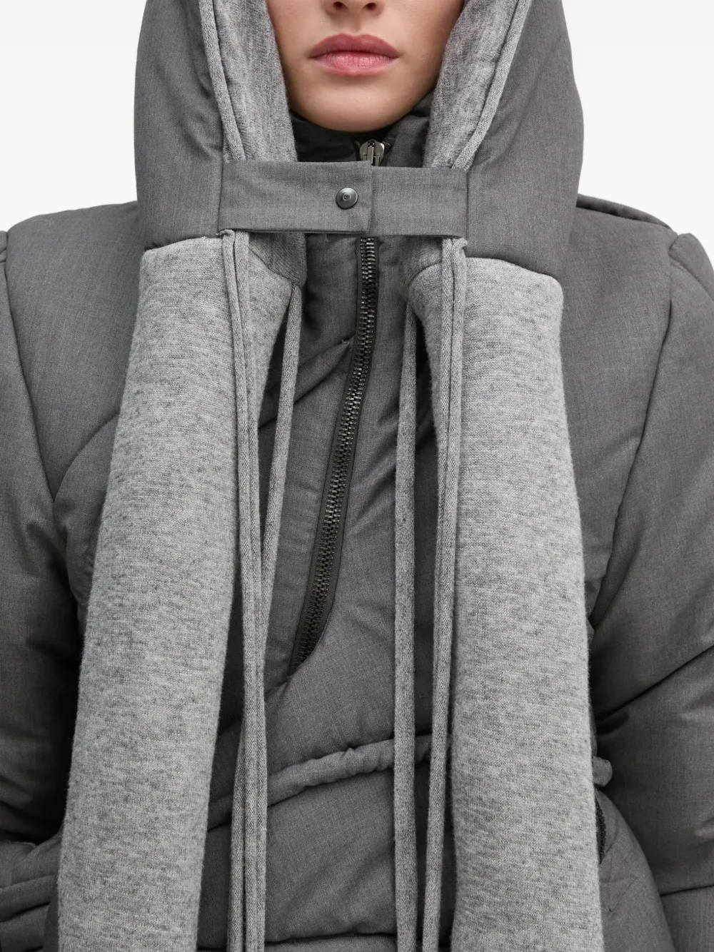 Серый пухлый дизайн, капюшон, застежка-молния спереди, длинные рукава
