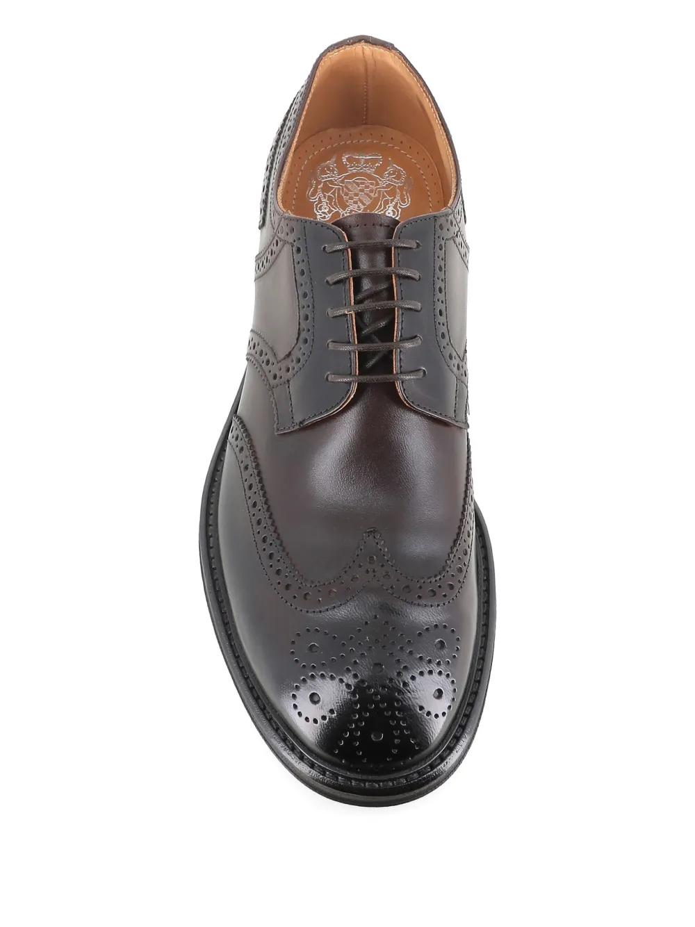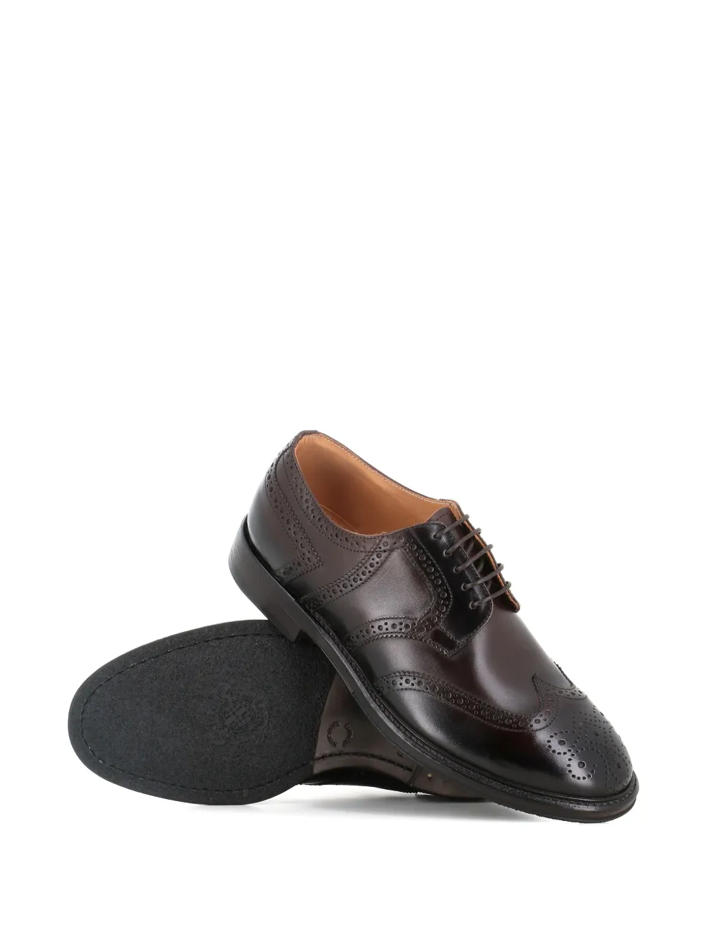 Кожа цвета махагон, перфорация в стиле брог, шнуровка, закругленный носок, низкий каблук