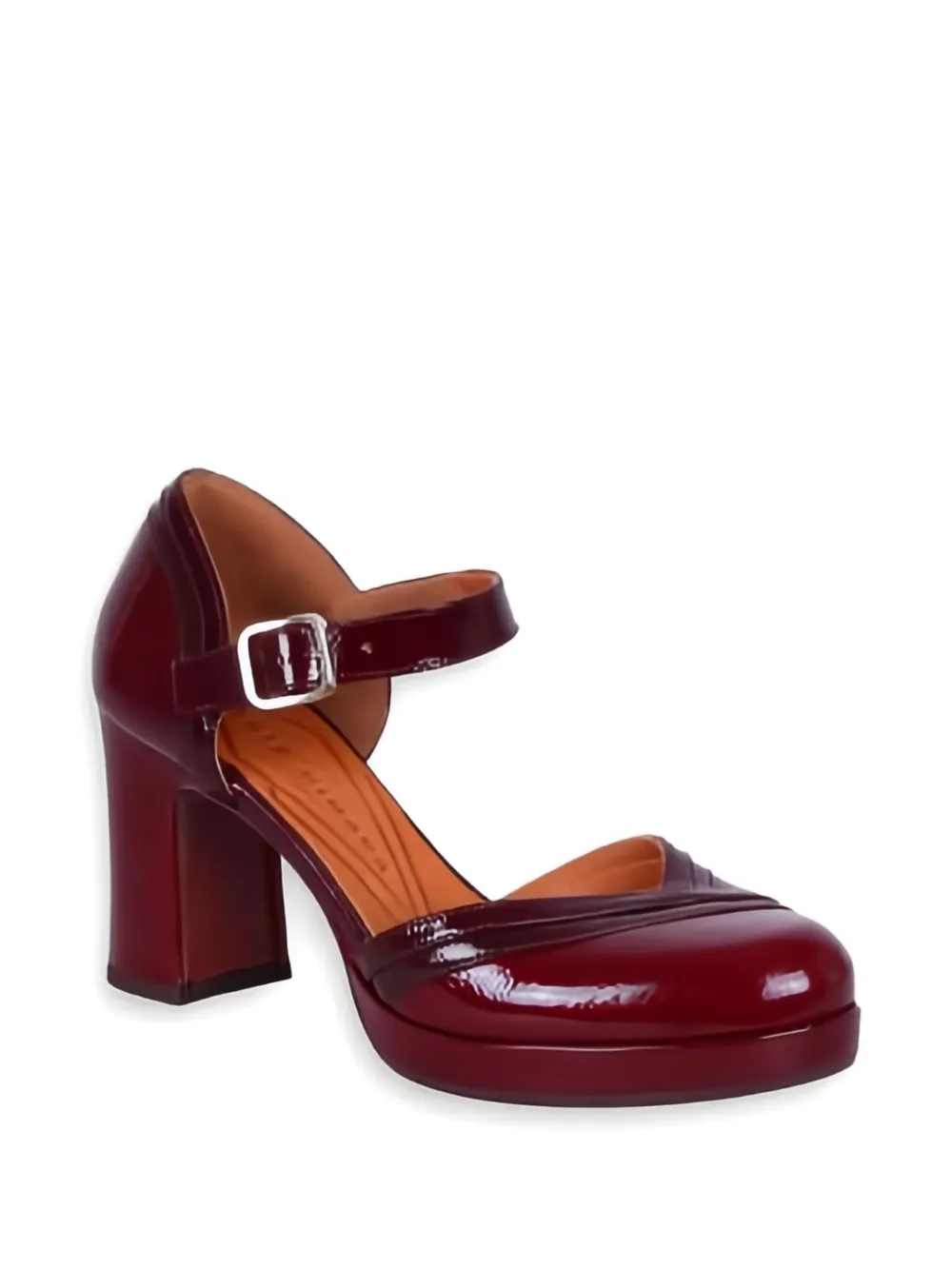 Рубиново-красные туфли на платформе с блочной пяткой, лакированным покрытием и застежкой на пряжку