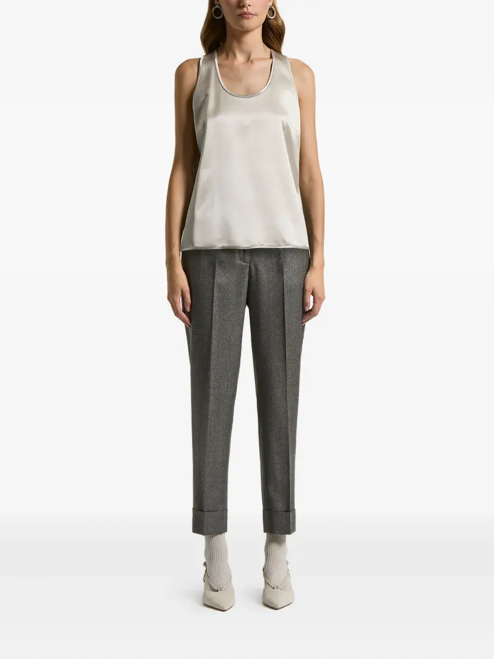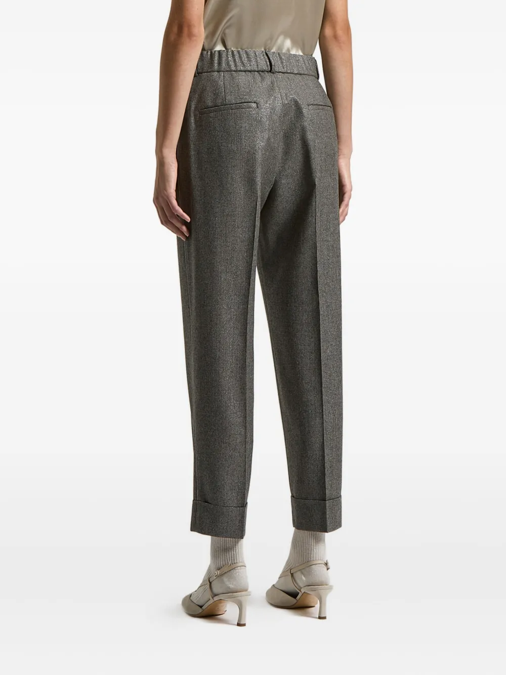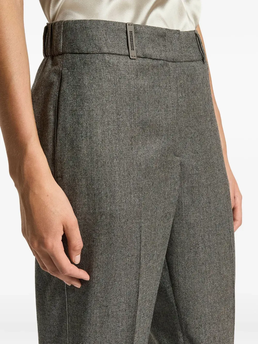 Серый ремень, манжеты на подоле, задний прорезной карман, скрытая застежка