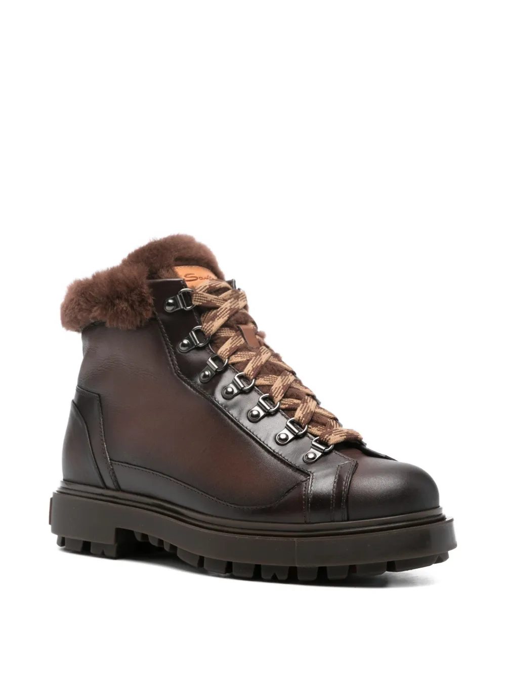 Ботинки дезерты с меховой отделкой Santoni, коричневый