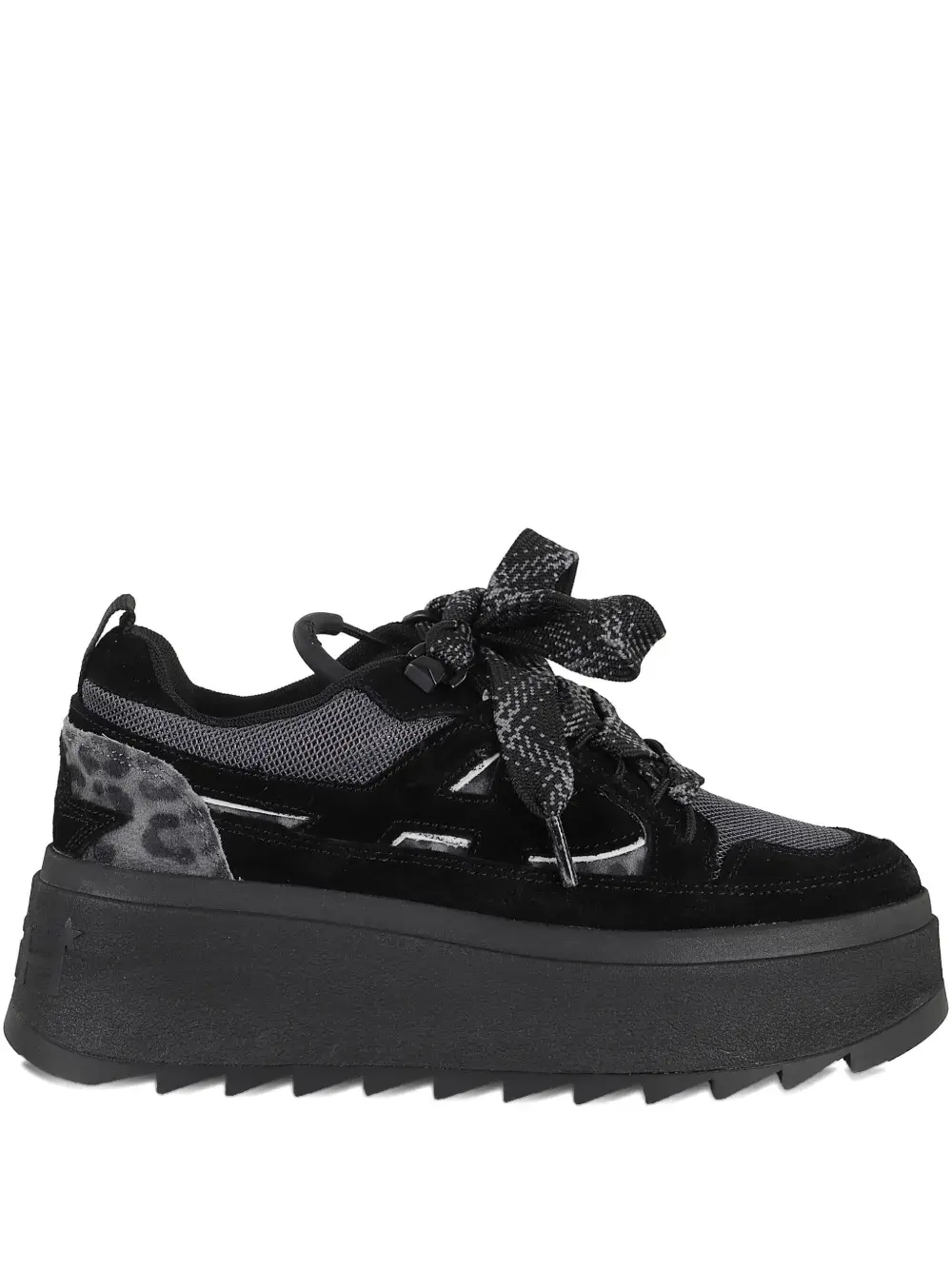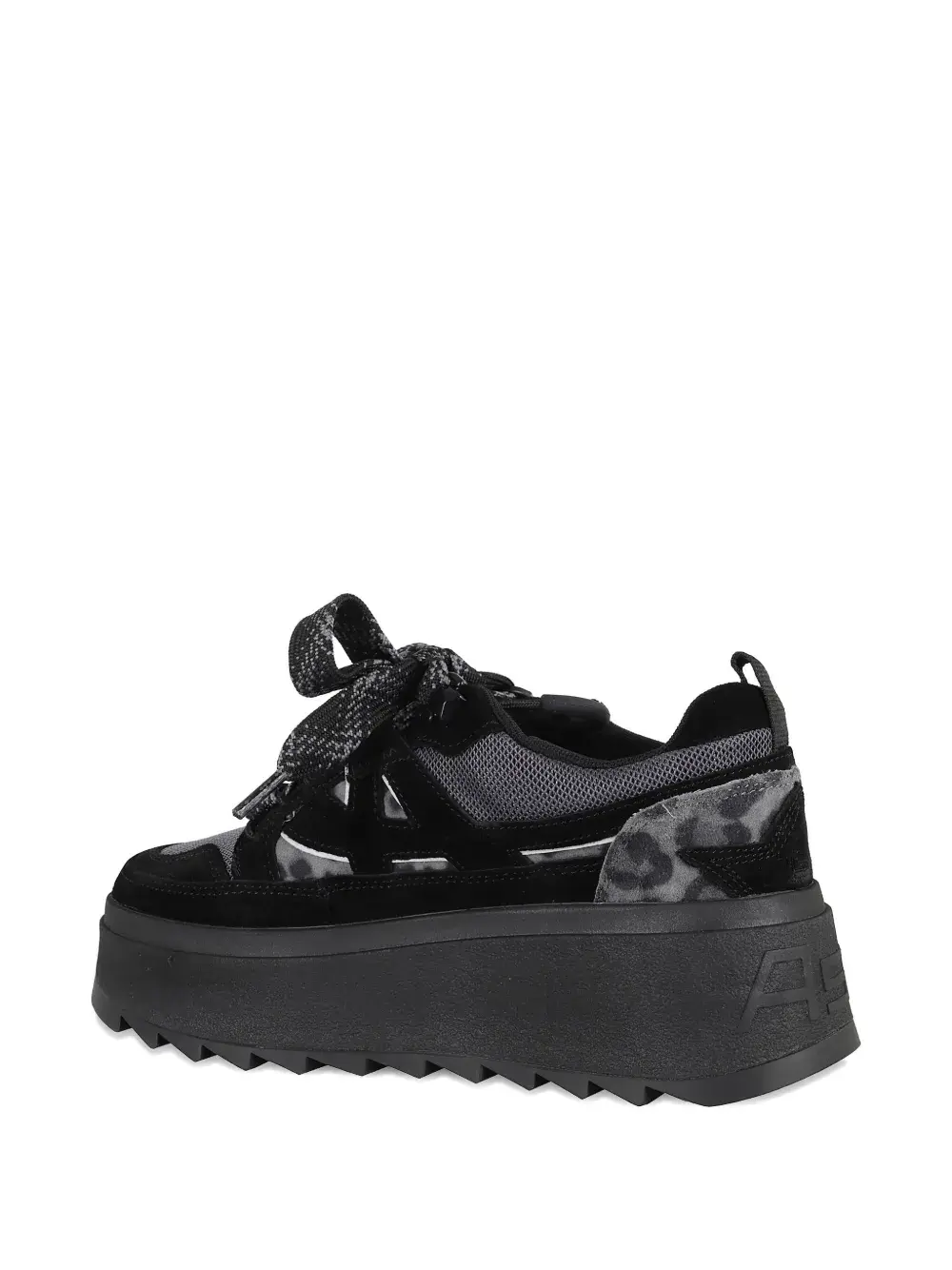 Черная подошва-платформа, застежка на шнуровке, вставка с леопардовым принтом, рифленая подошва, петля на пятке