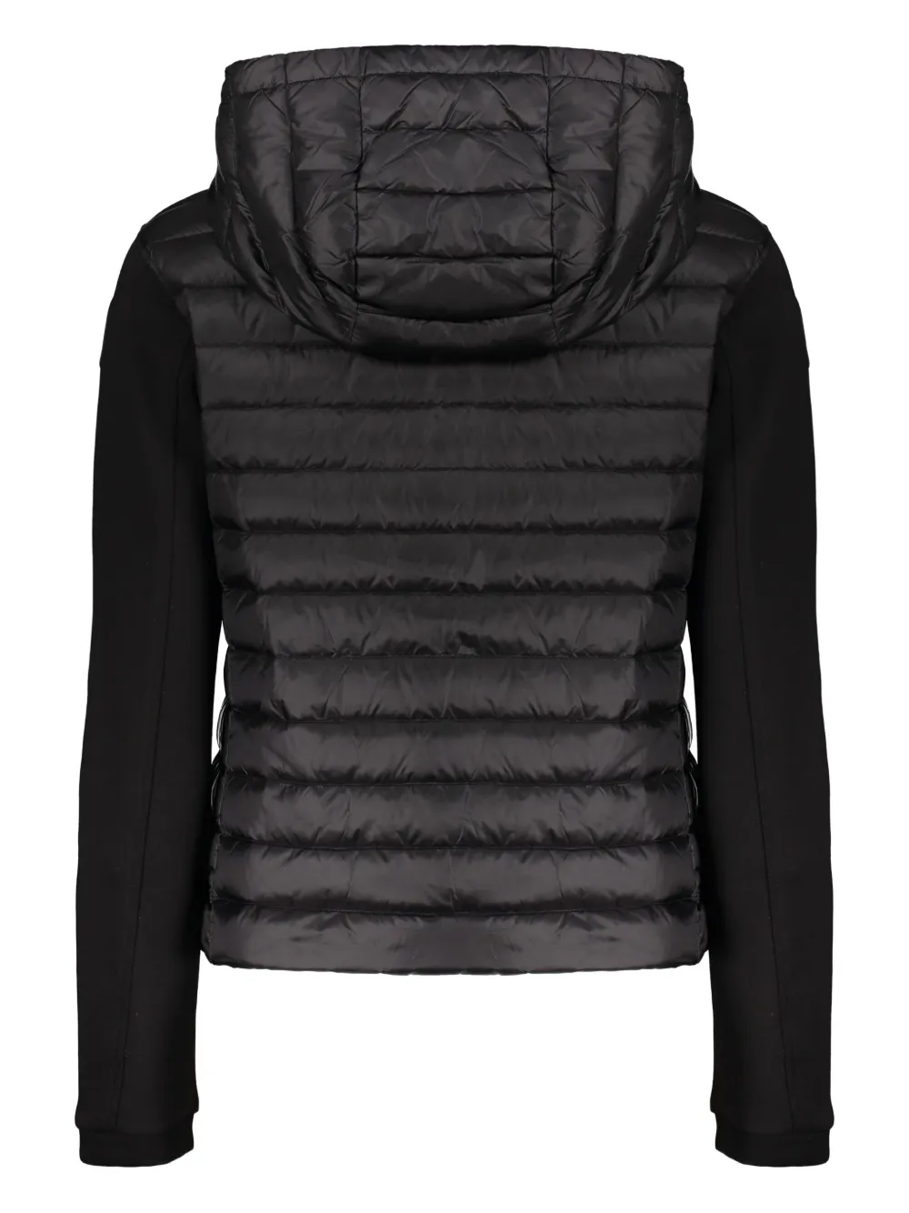 Черная стеганая куртка с молнией спереди, длинными рукавами, контрастными полосками и капюшоном