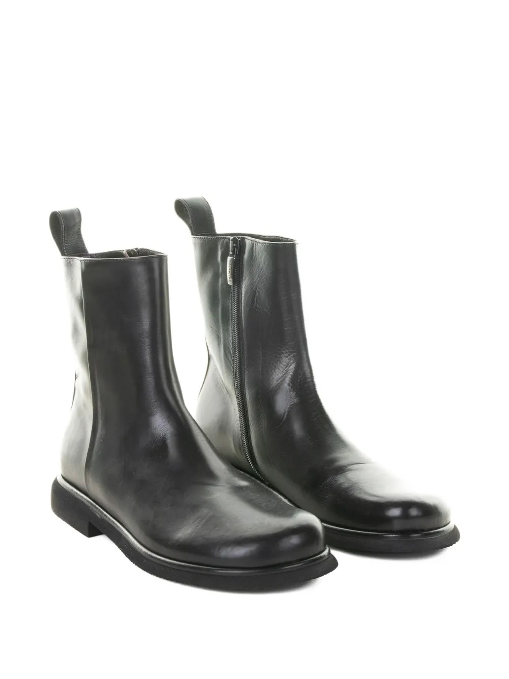 Черная кожа, застежка-молния, язычок на молнии, круглый носок