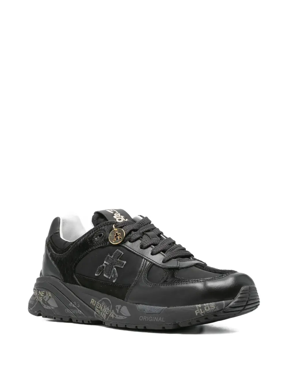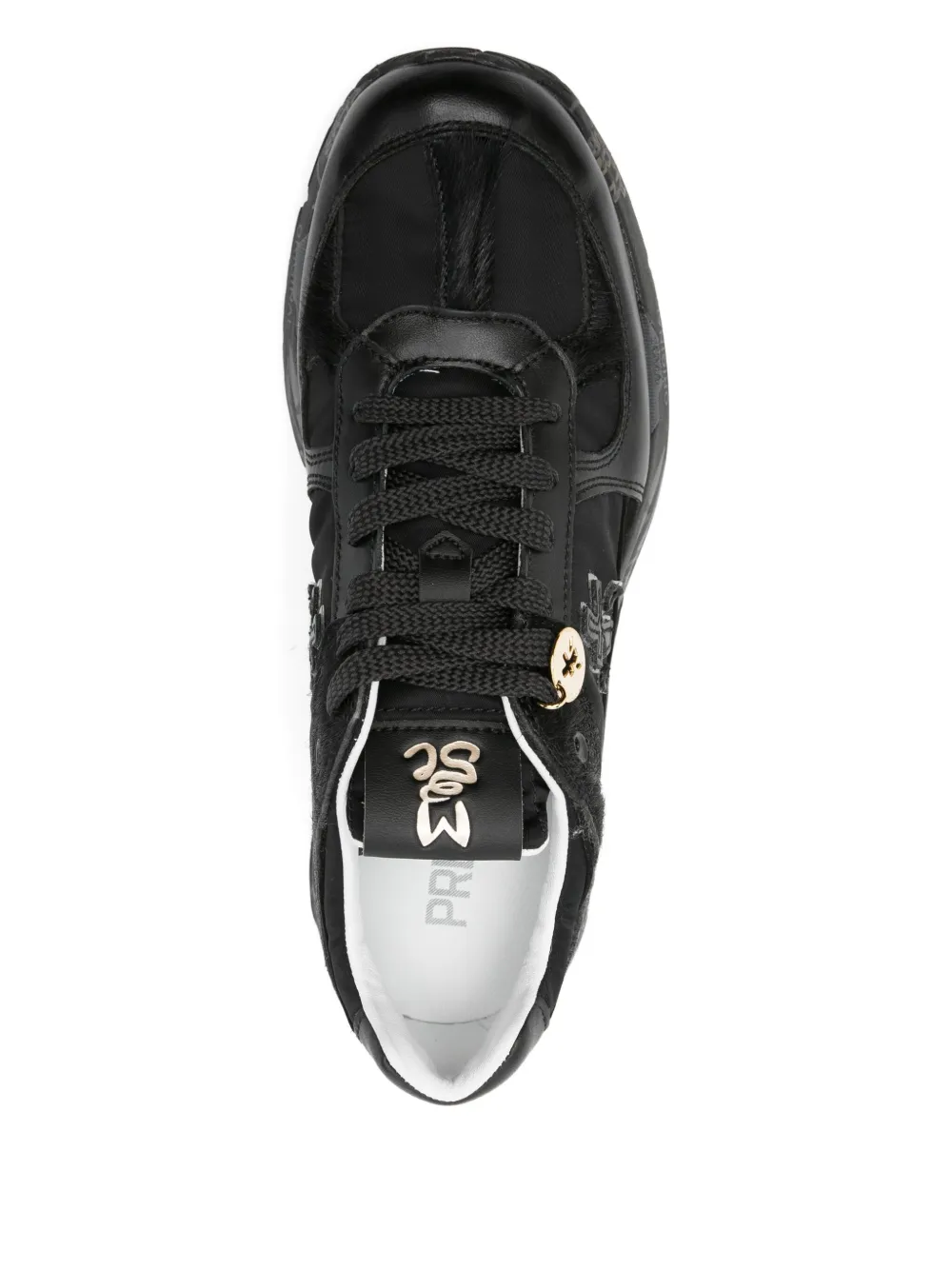 Черные кеды с аппликацией, шнуровкой, округлым мысом, резиновой подошвой и платформой