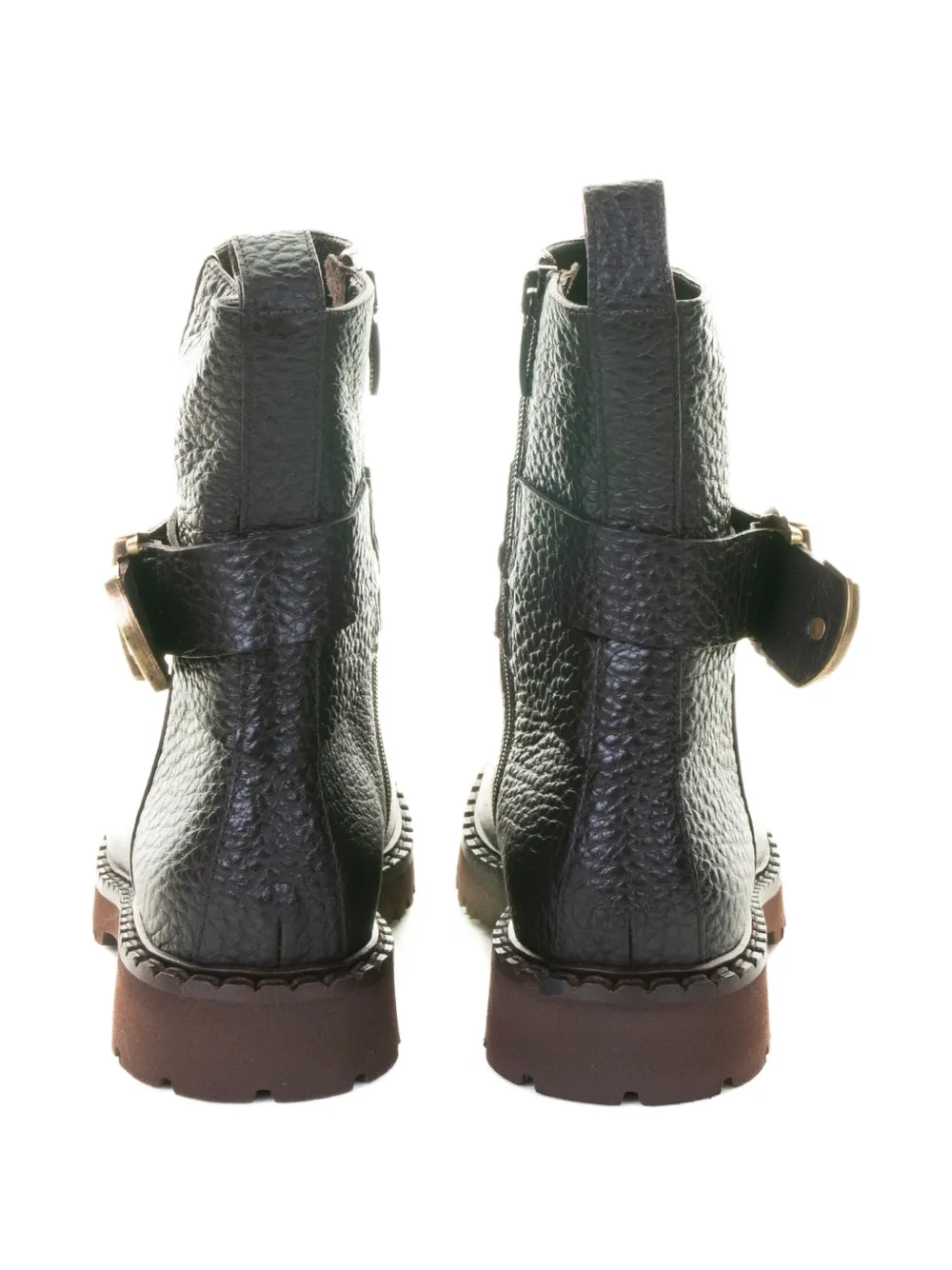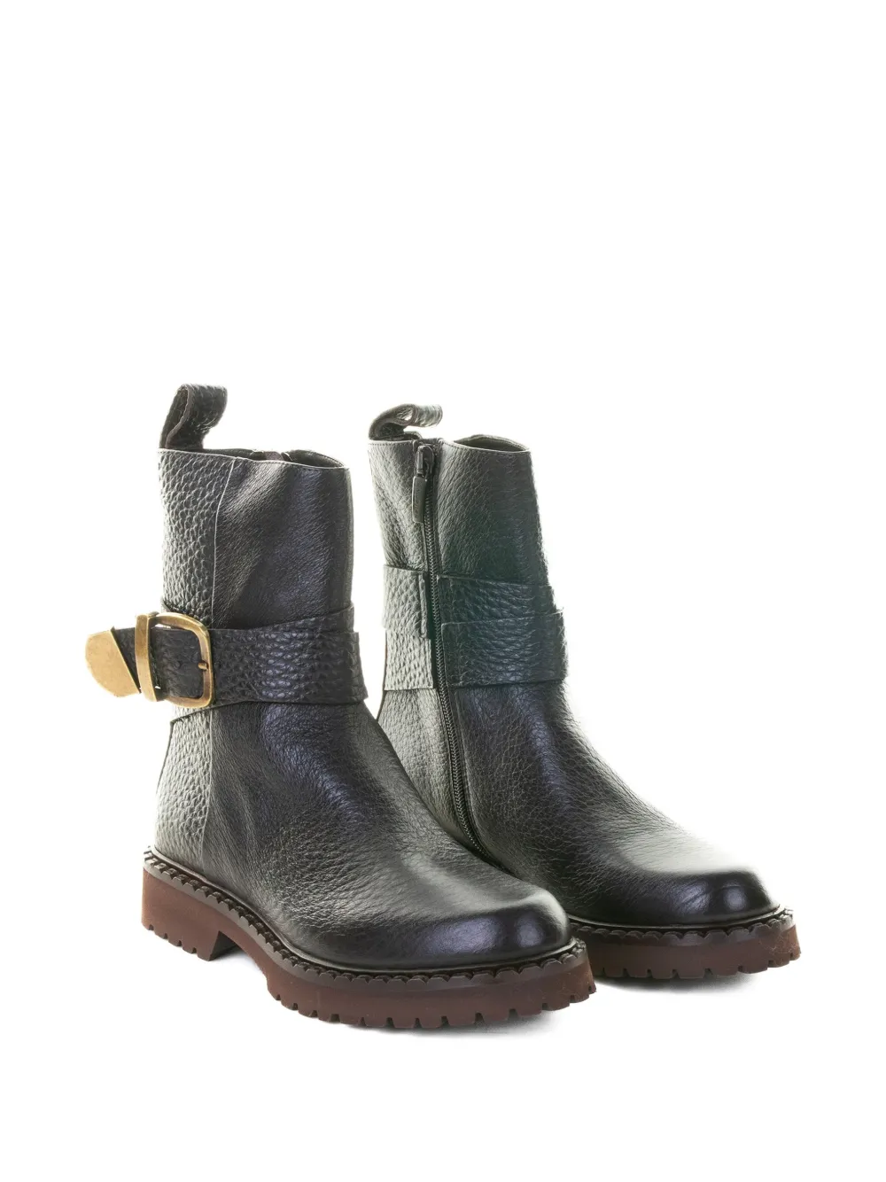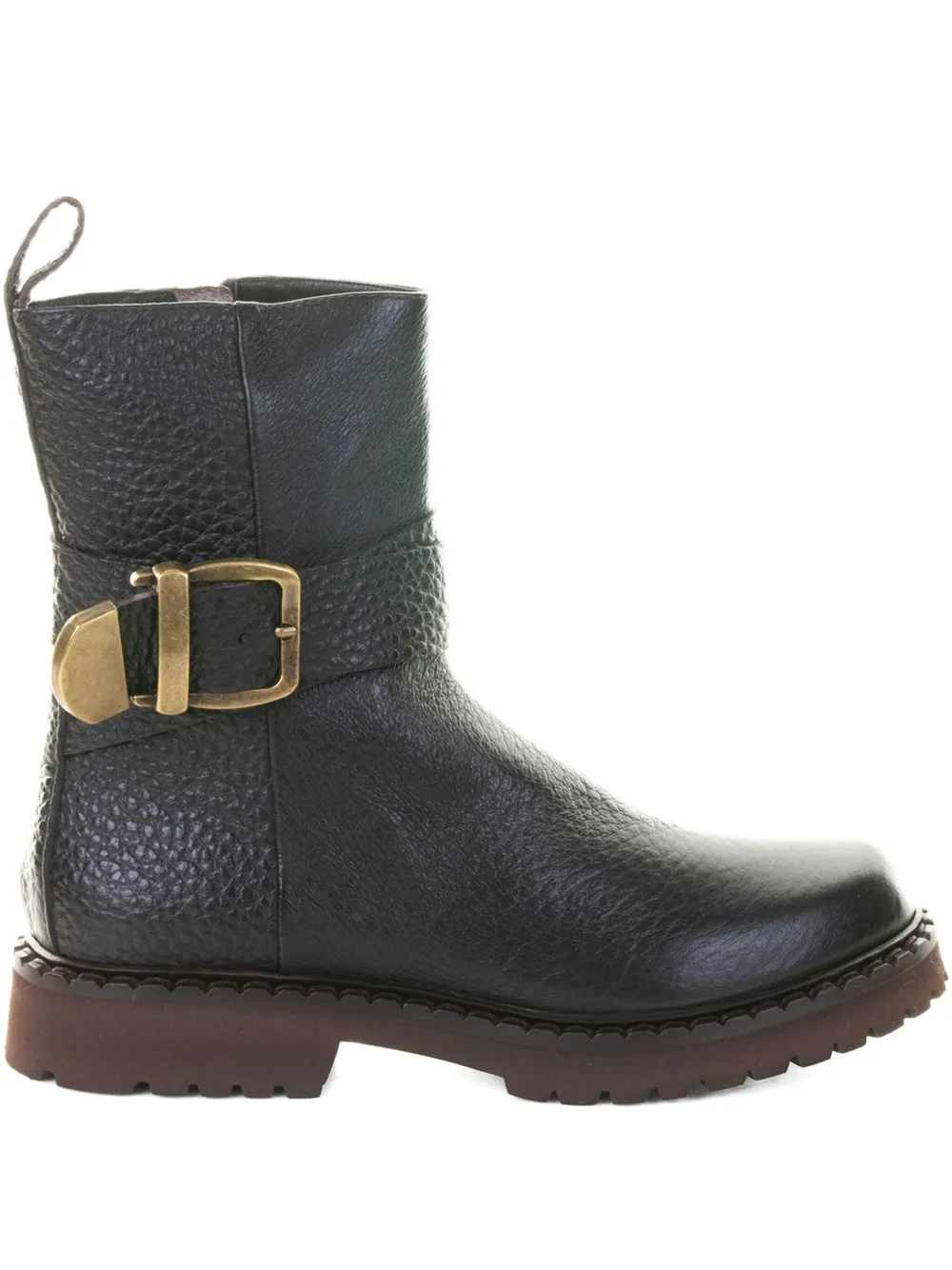 Темно-коричневый цвет, пряжка, застежка-молния, петля для натягивания, рифленая подошва