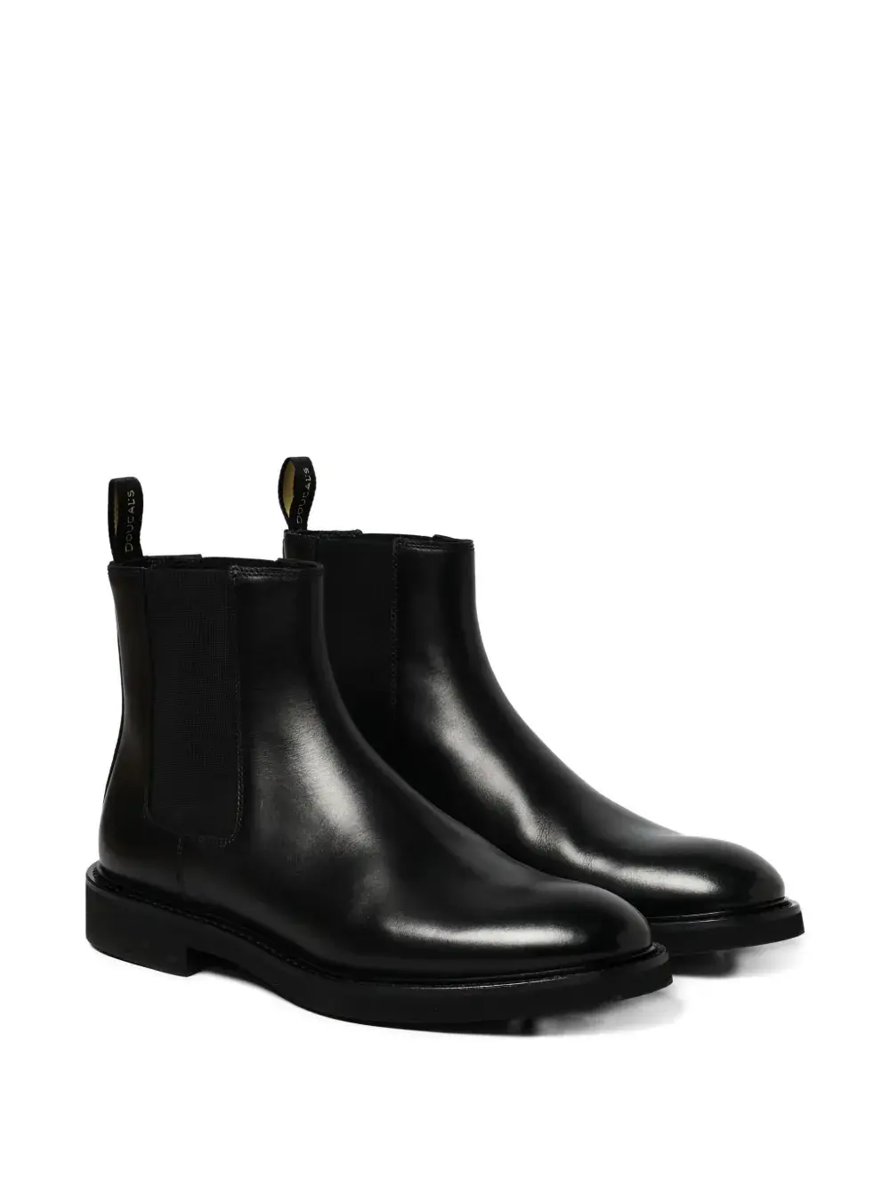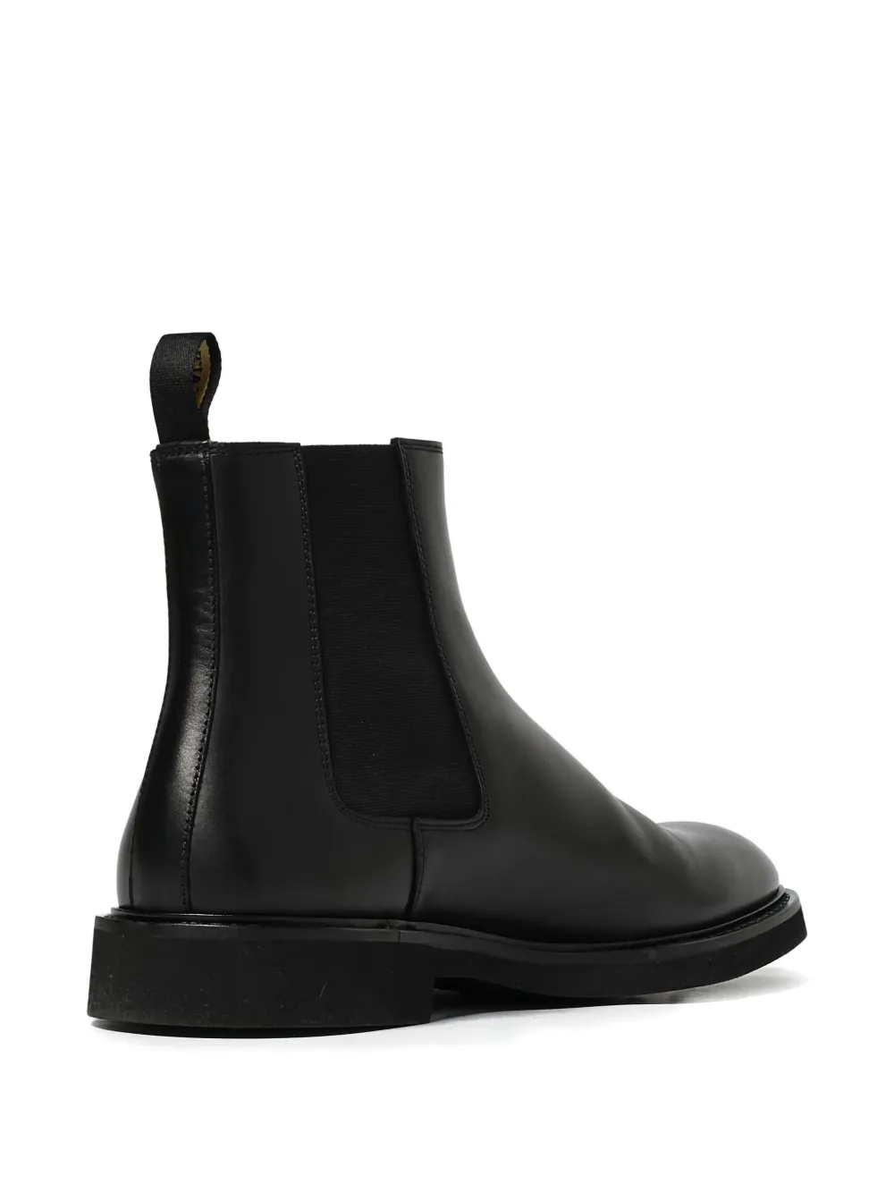 Черная кожа, дизайн без застежки, петля сзади, эластичные боковые вставки, плоская подошва