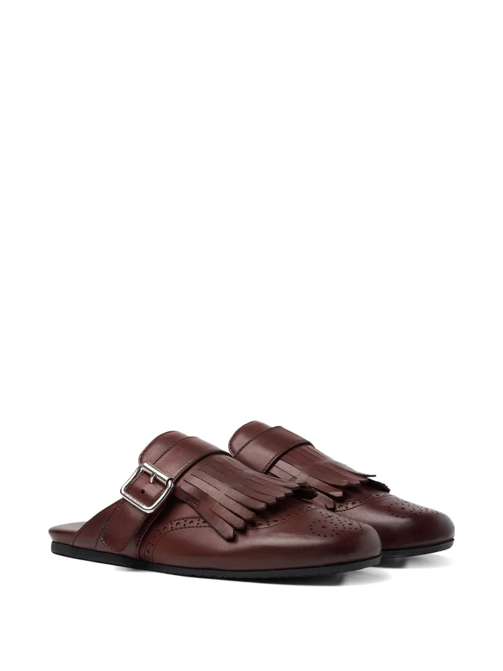 Коньячного цвета туфли с пряжками, бахромой, перфорацией, без застежек, на плоской подошве