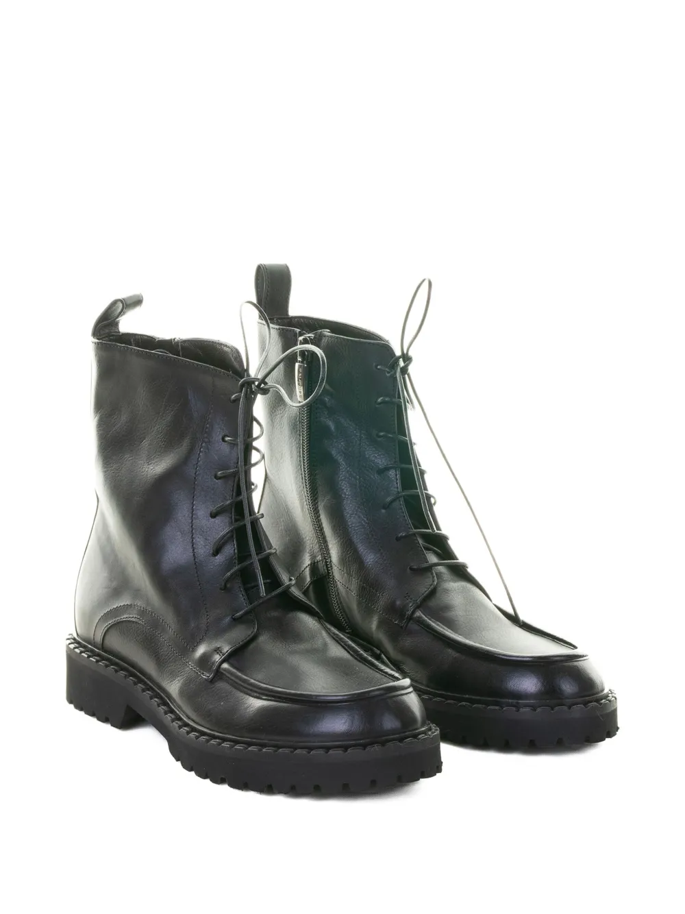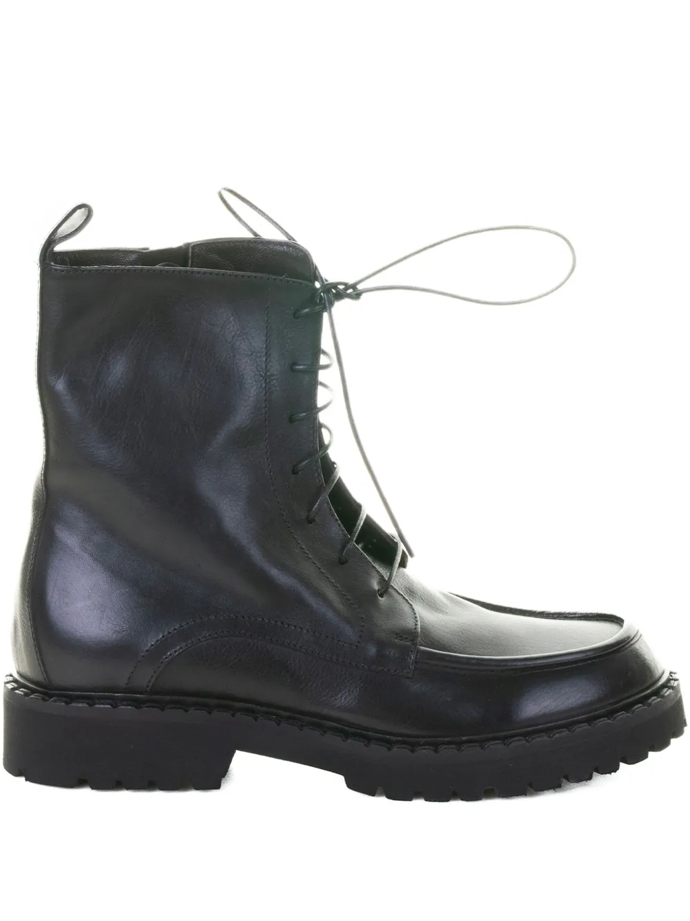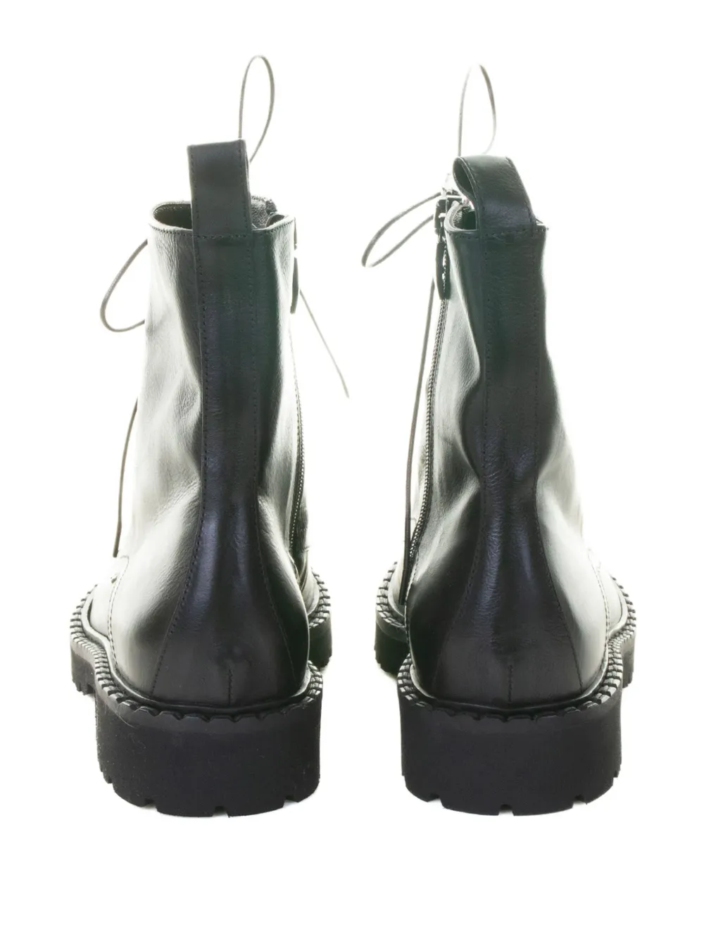 Черная платформа с рифленой подошвой, шнуровка, петля сзади, боковая молния, круглый носок
