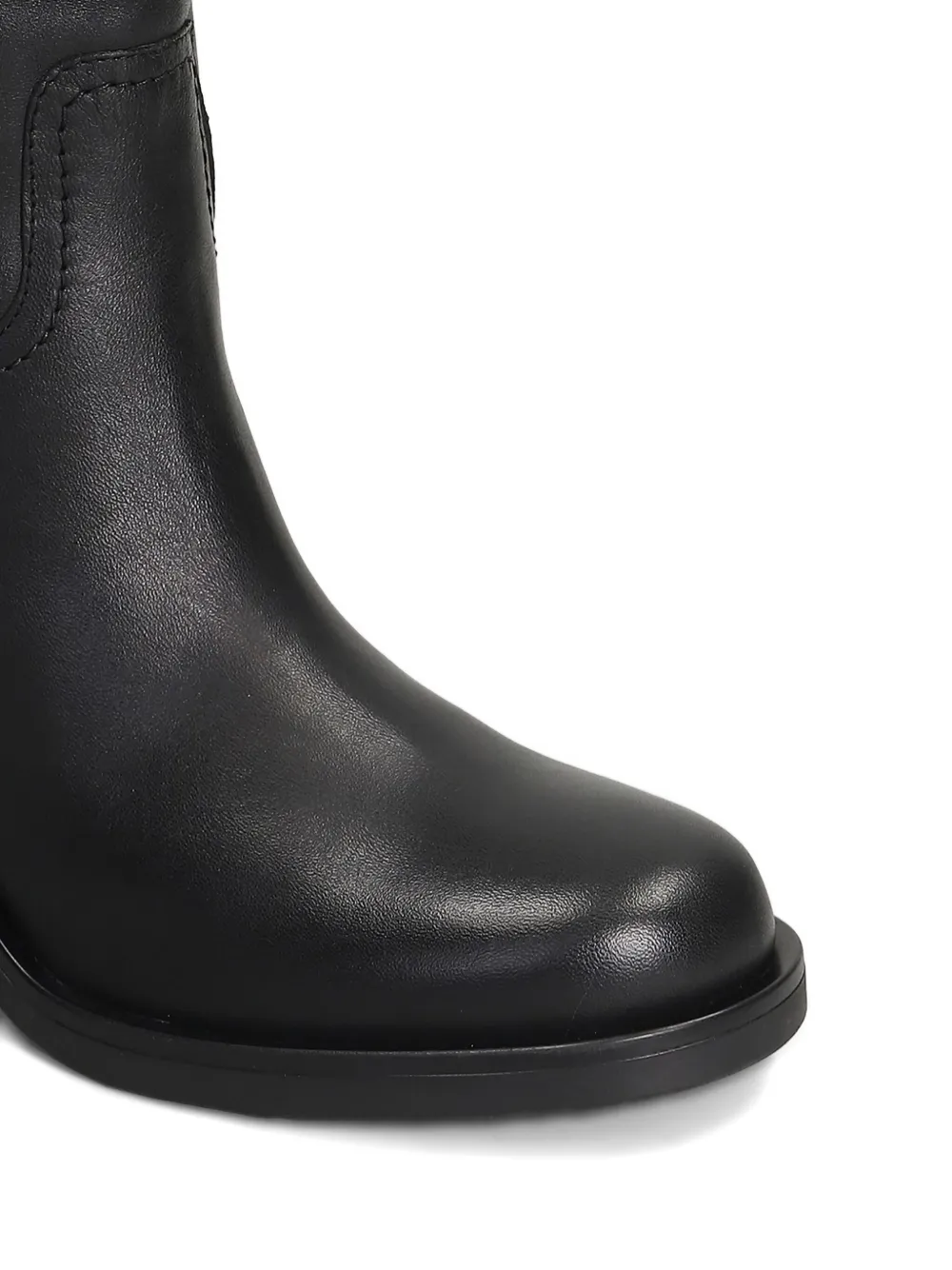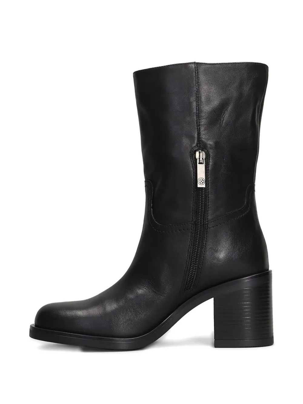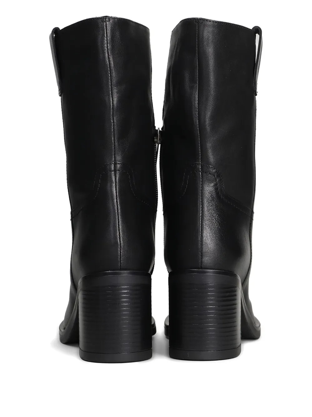 Черные ботильоны на блочном каблуке с боковой молнией, комбинированными вставками и боковой петлей