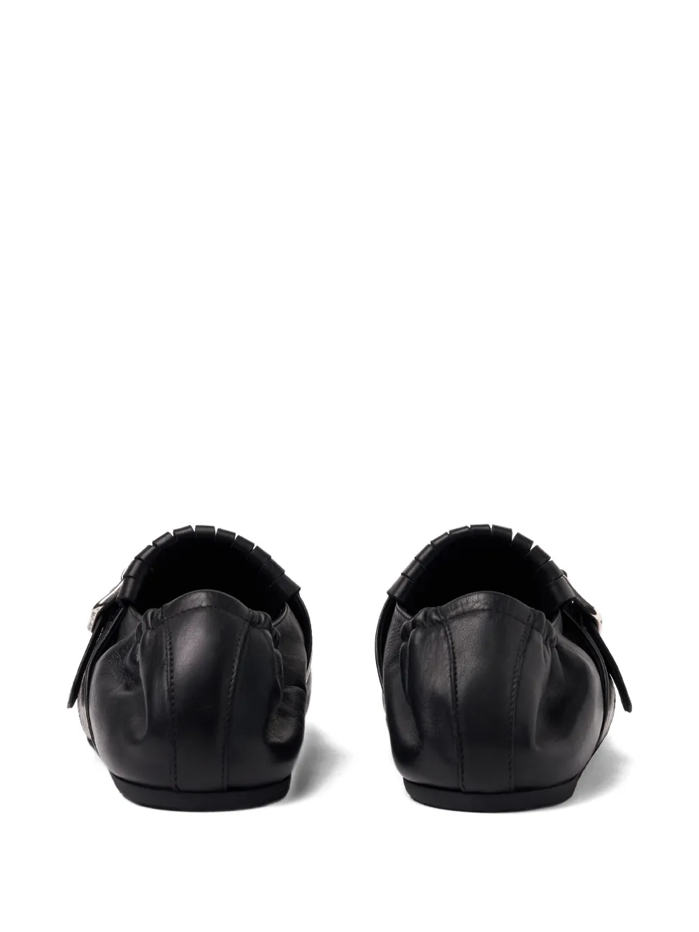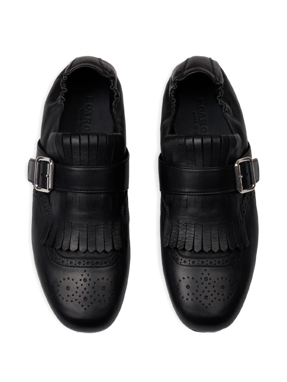 Черная отделка бахромой, ремешок с пряжкой, перфорированные детали, эластичная отделка, плоская подошва