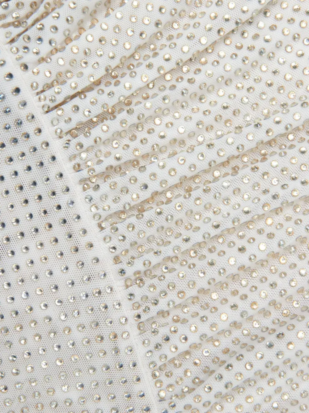 Шампанское, декор из страз, вырезы, без рукавов, драпировка, круглый вырез