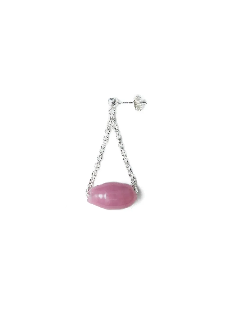 Розовая серьга с цепочкой, застежкой-гвоздиком и подвеской с бусинами. Все изделия изготовлены вручную. Это одиночная серьга.