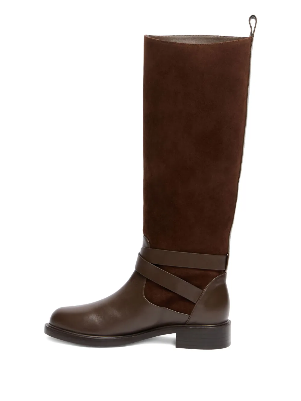 Коричневые сапоги до колена, без застежек, с круглым носком и петлей для надевания