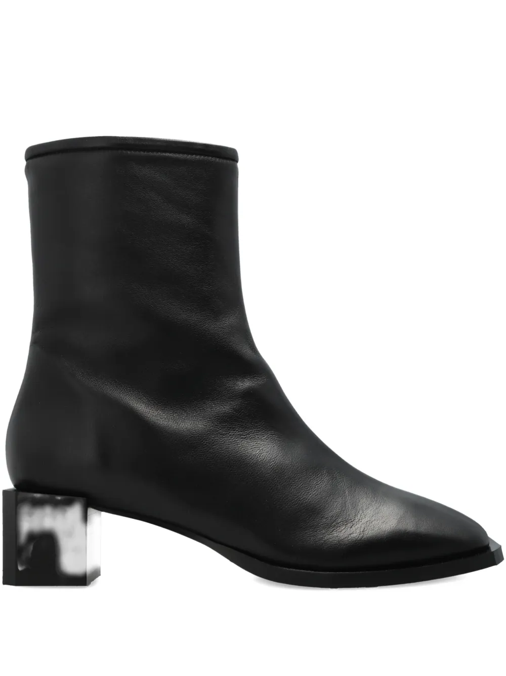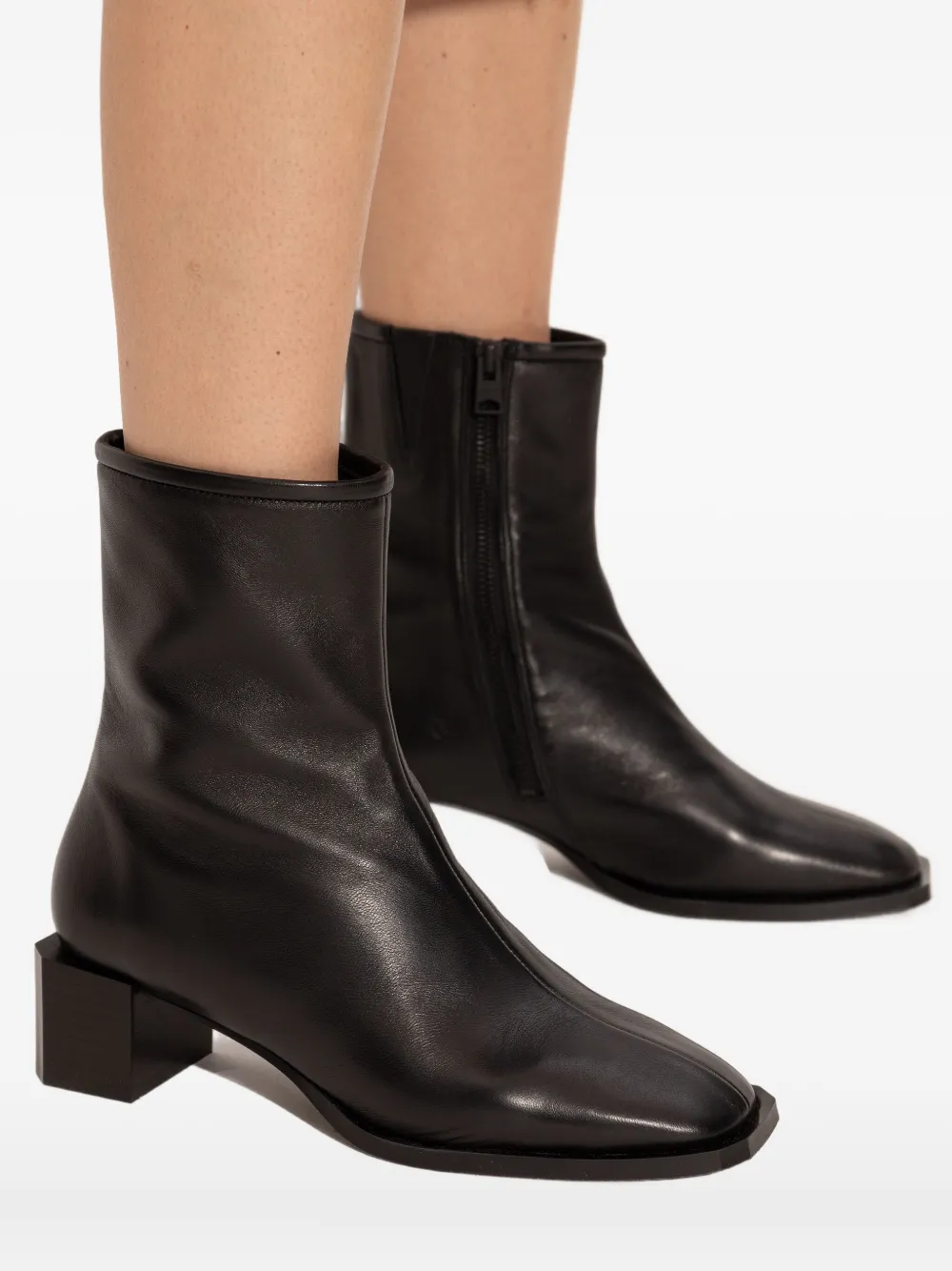 Черные ботильоны из овечьей кожи на квадратном каблуке с застежкой-молнией и квадратным носком