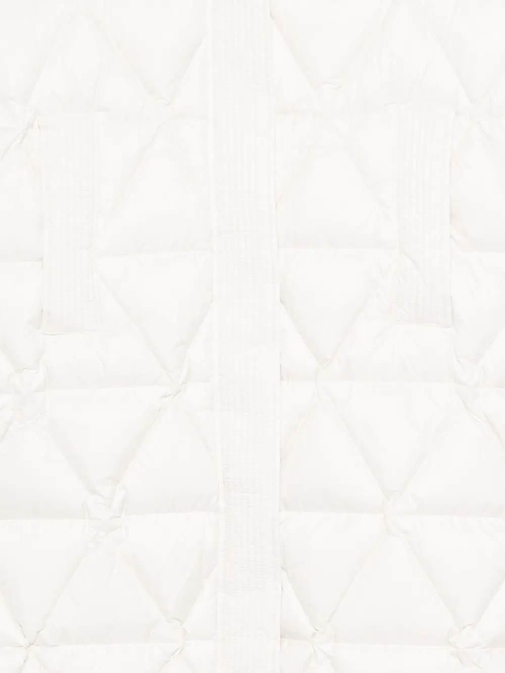Белый пуховик с потайной застежкой-молнией спереди и капюшоном на кулиске