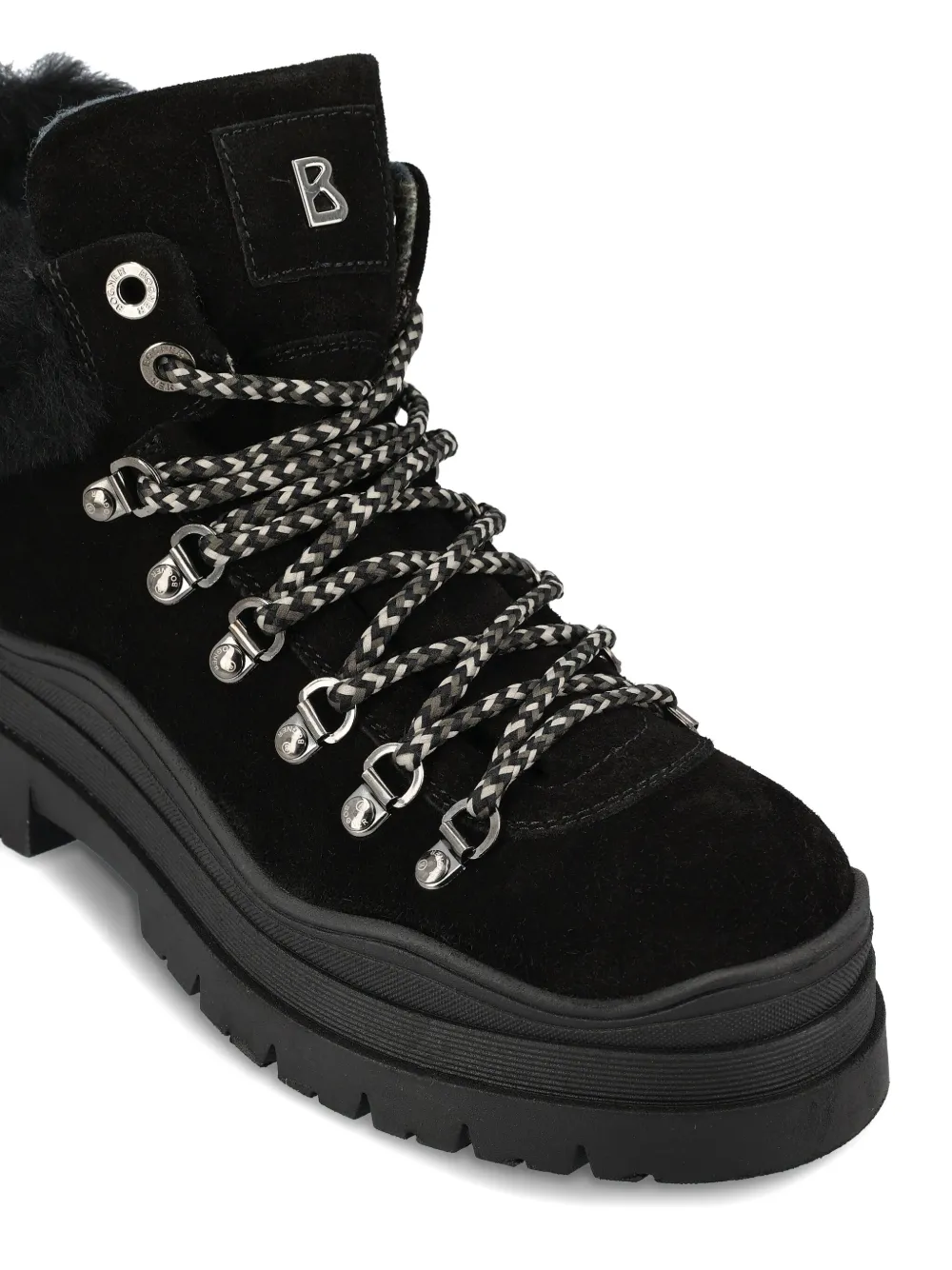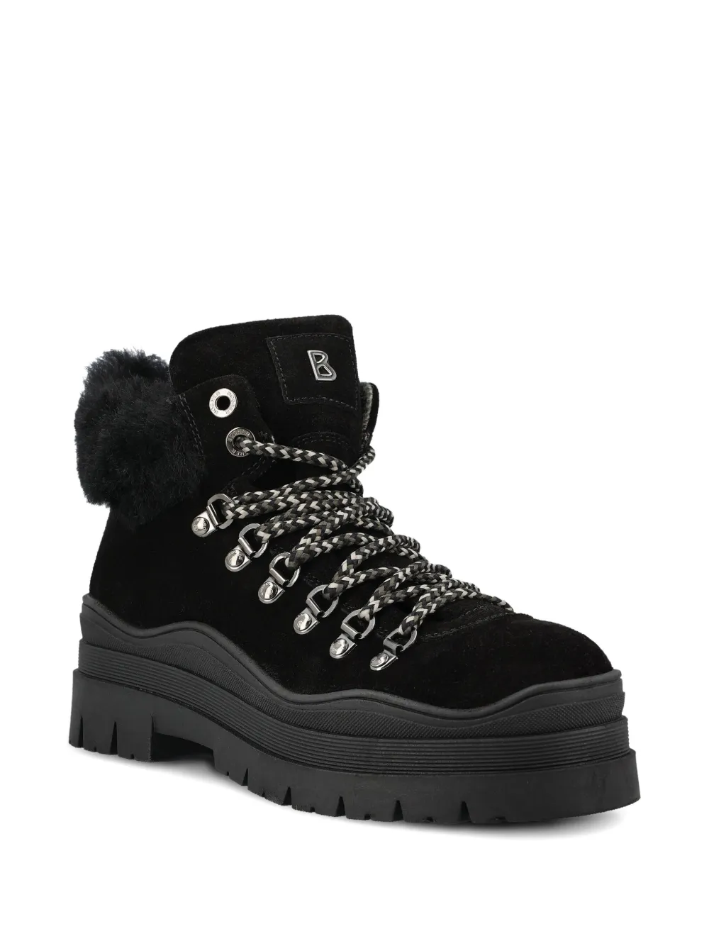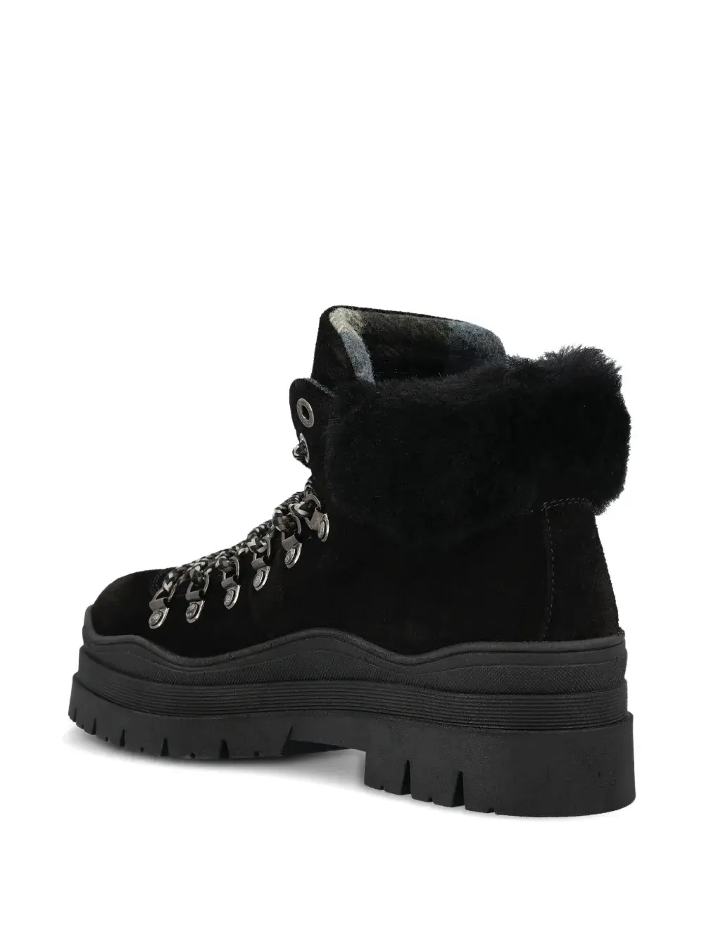Черные ботинки с отделкой из овчины, на массивной подошве, с мягким воротником и шнуровкой