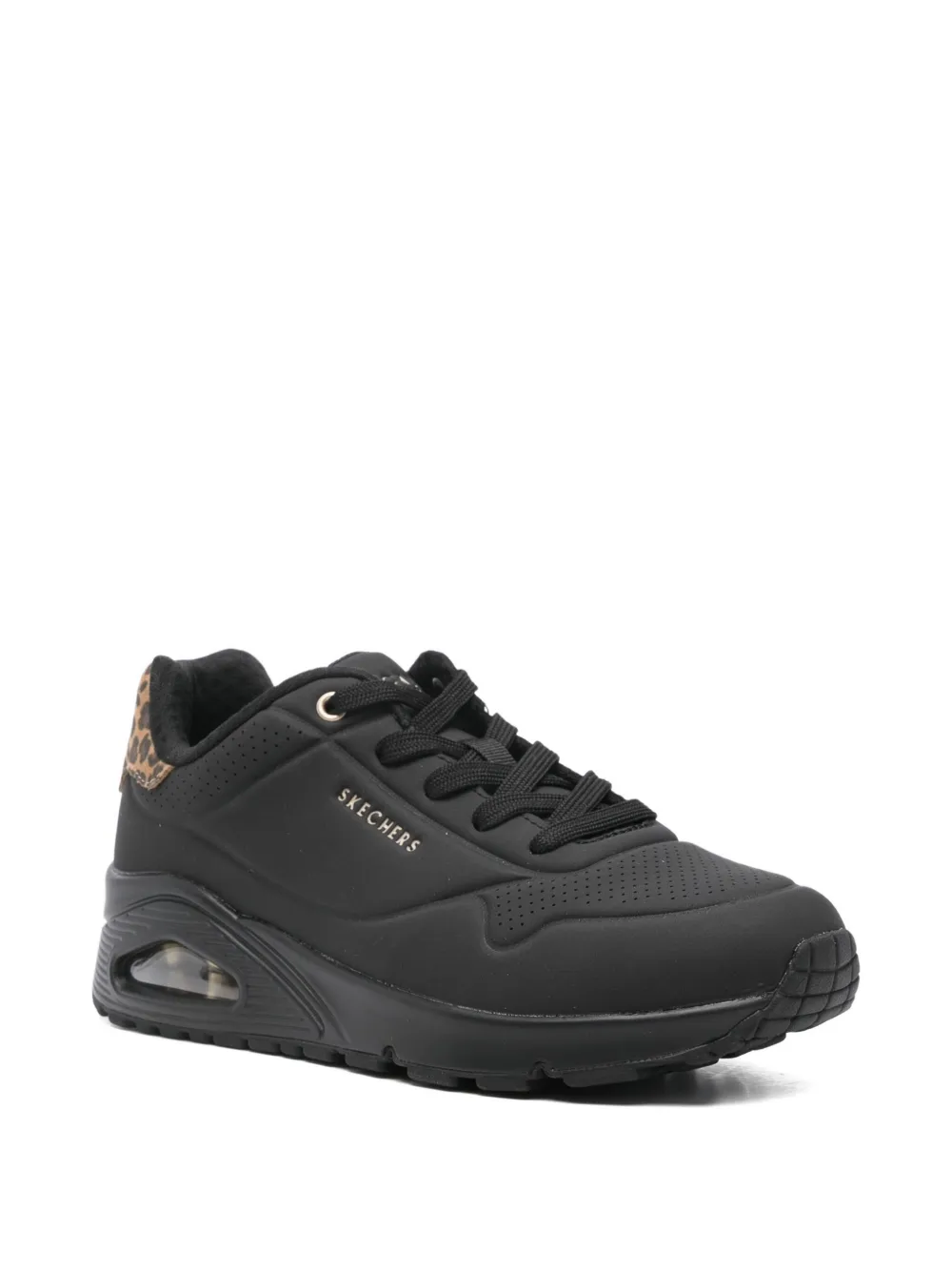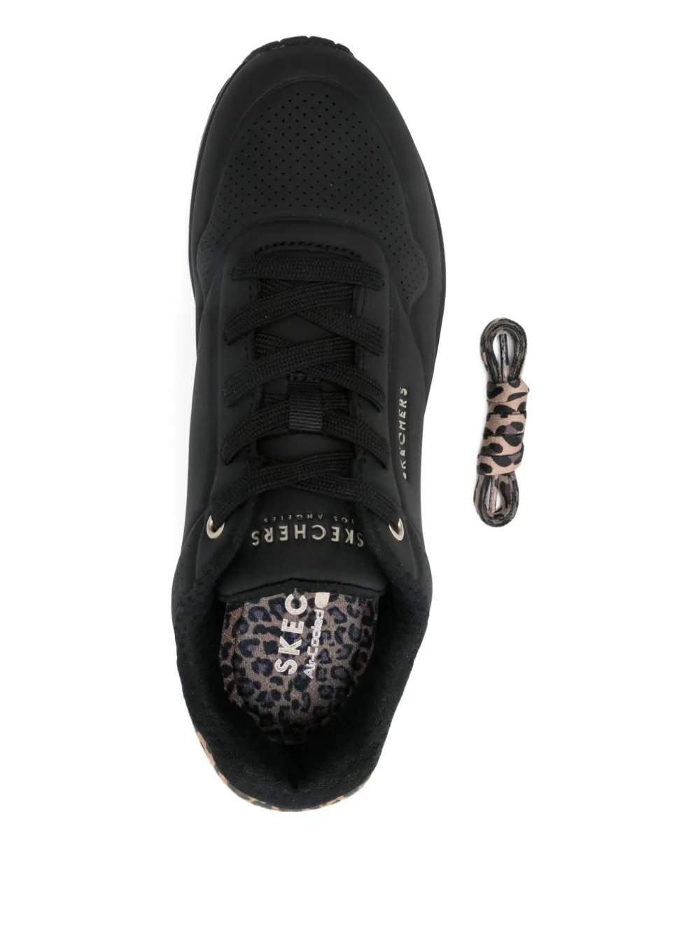 Черные кроссовки с леопардовым принтом, перфорированными деталями, шнуровкой, подошвой с воздушной подушкой и круглым носком