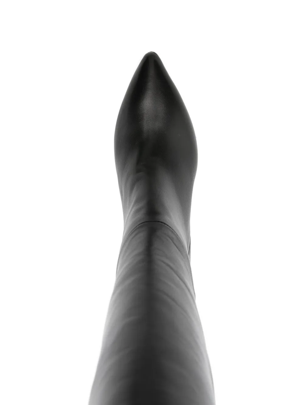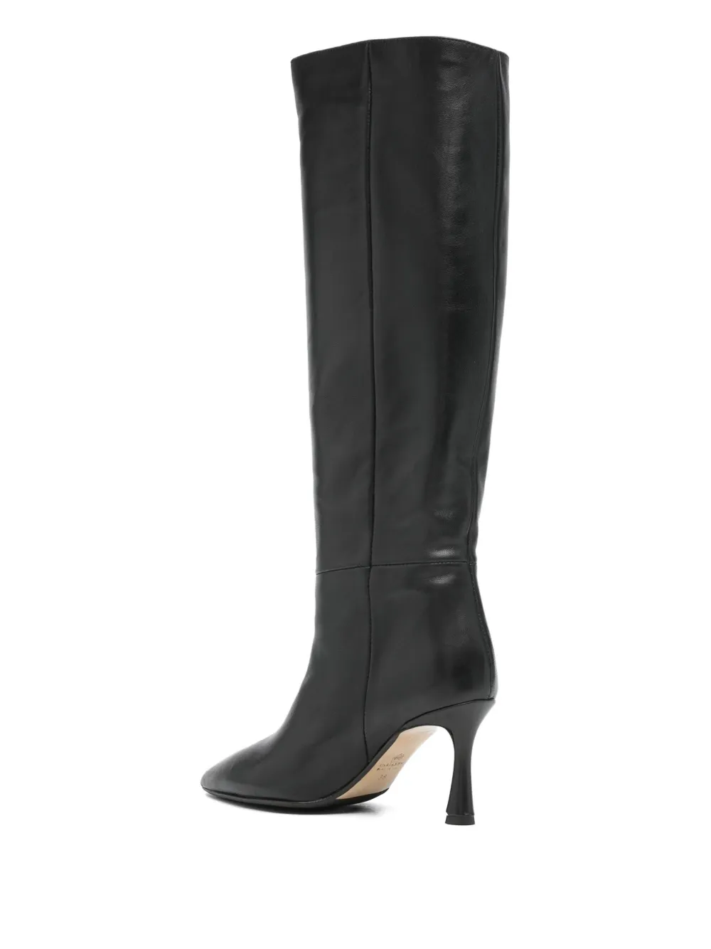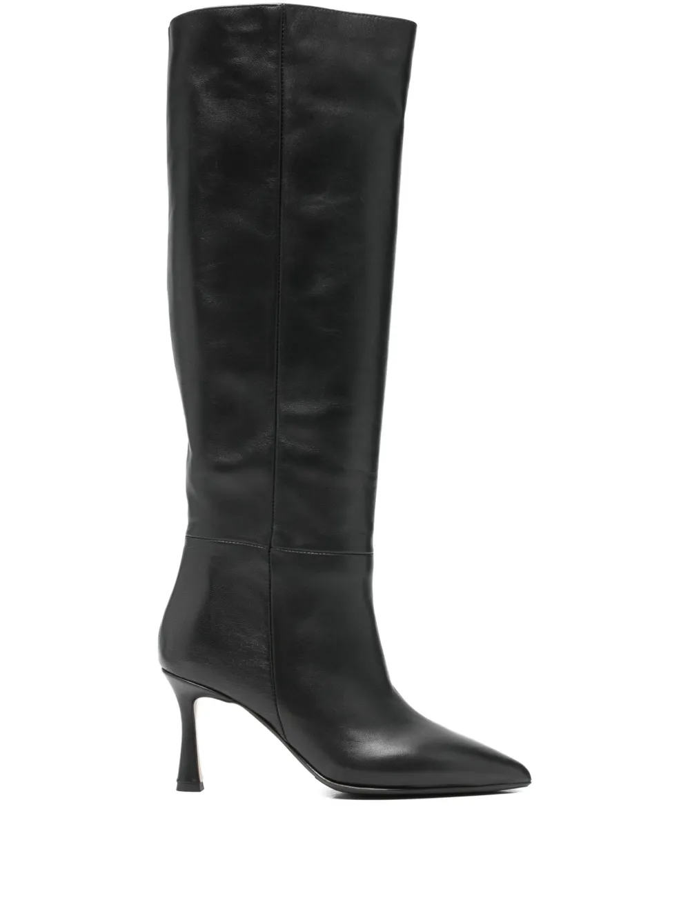 Черные сапоги до колена на шпильке с заостренным носком