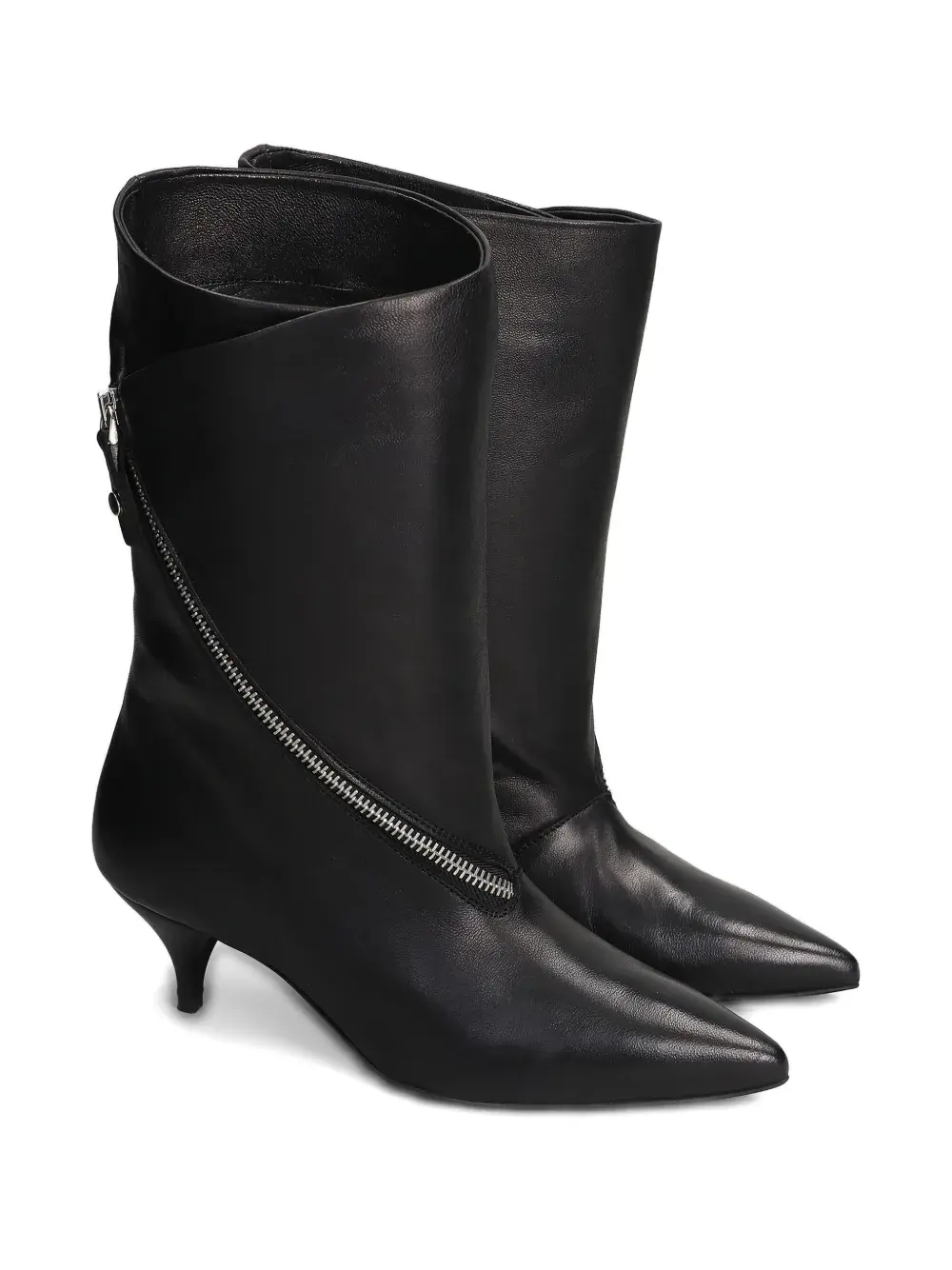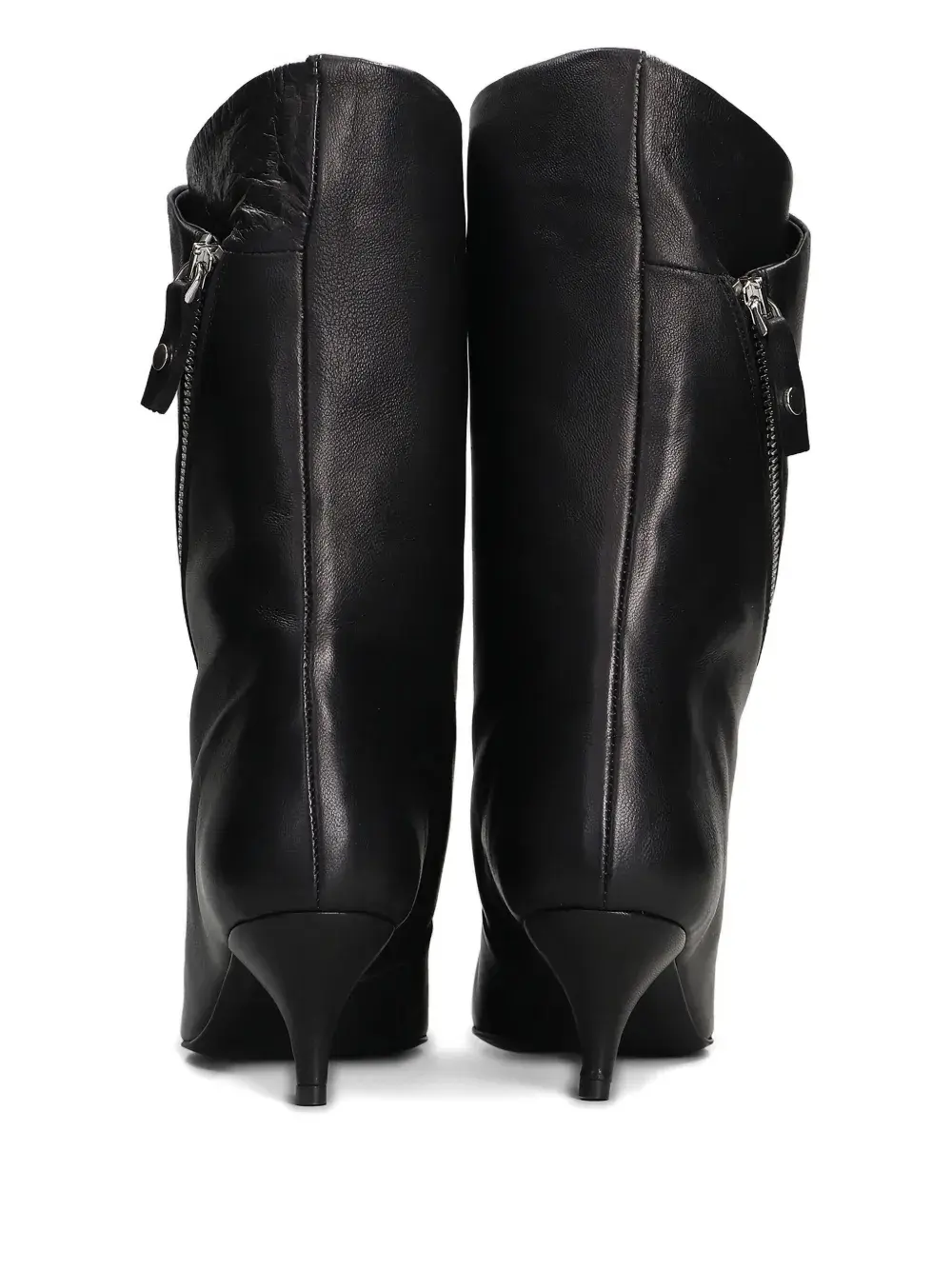 Черные туфли-лодочки на низком каблуке с заостренным носком и молнией