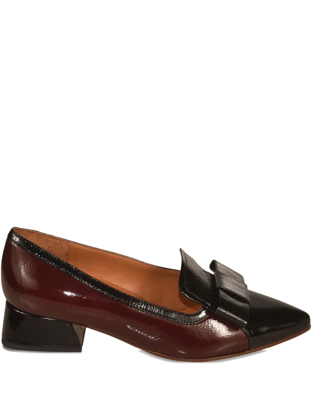 Красные кожаные туфли с бантом, заостренным носком и широким каблуком