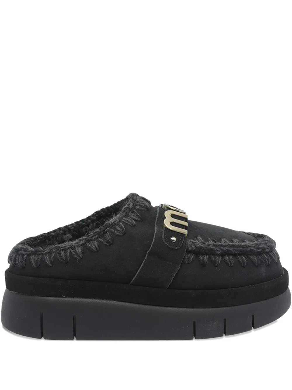 Мюли с круглым носком и логотипом Mou, черный