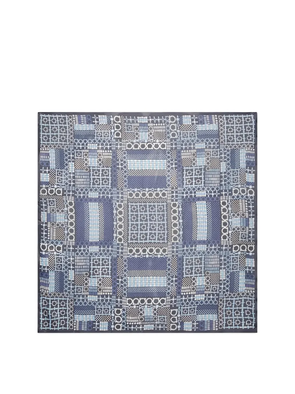 Шелковый шарф с геометрическим принтом Ferragamo, синий