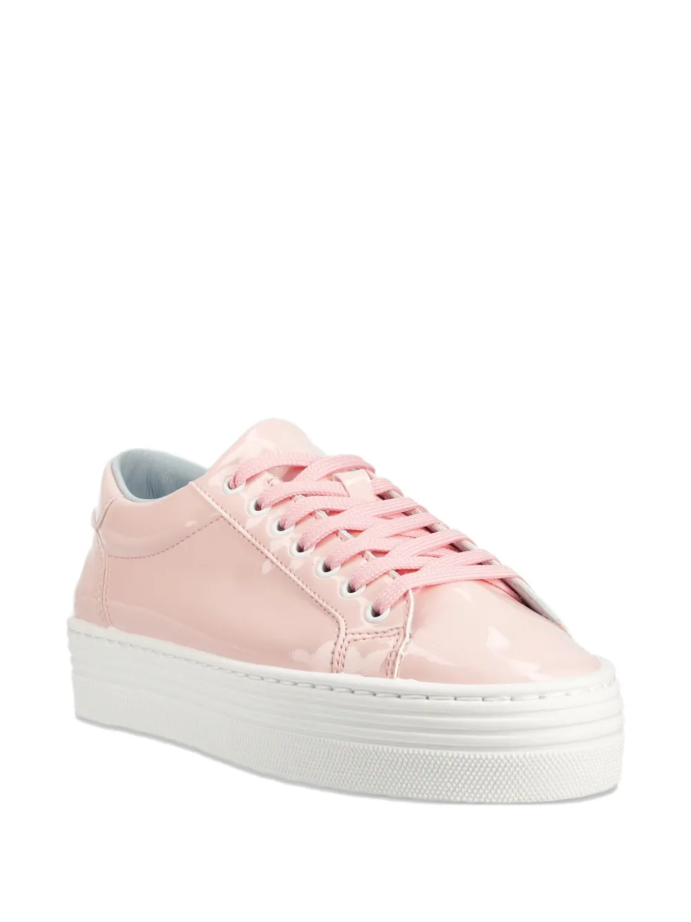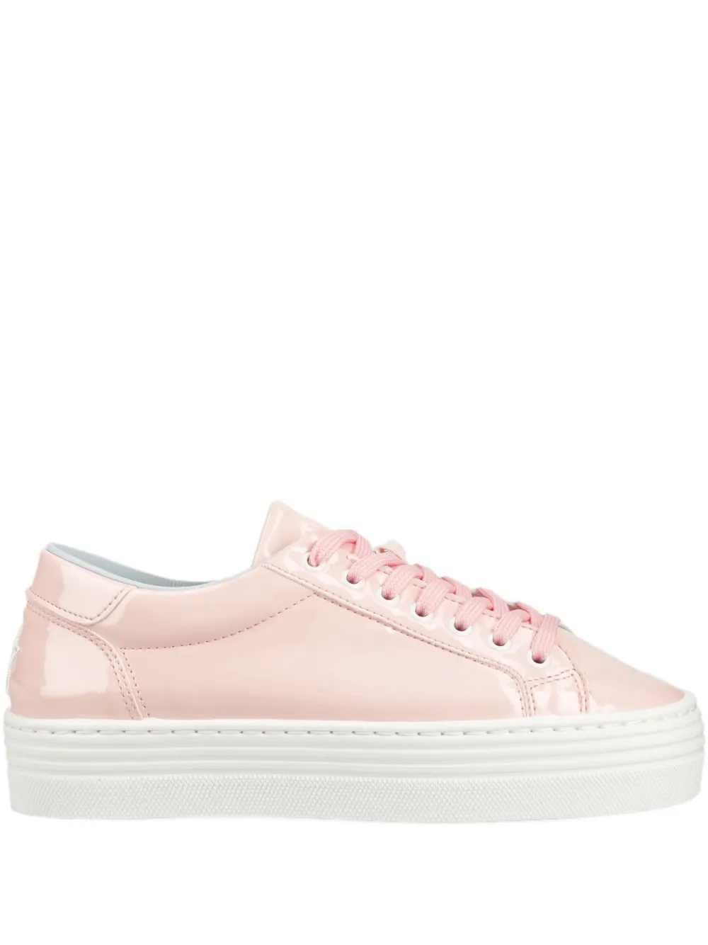 Светло-розовый лаковый верх, подошва-платформа, шнуровка, резиновая подошва