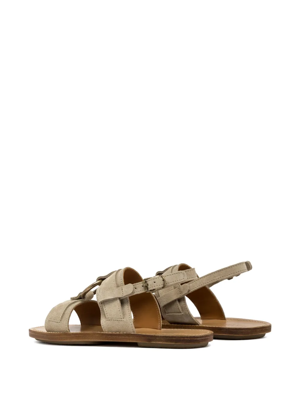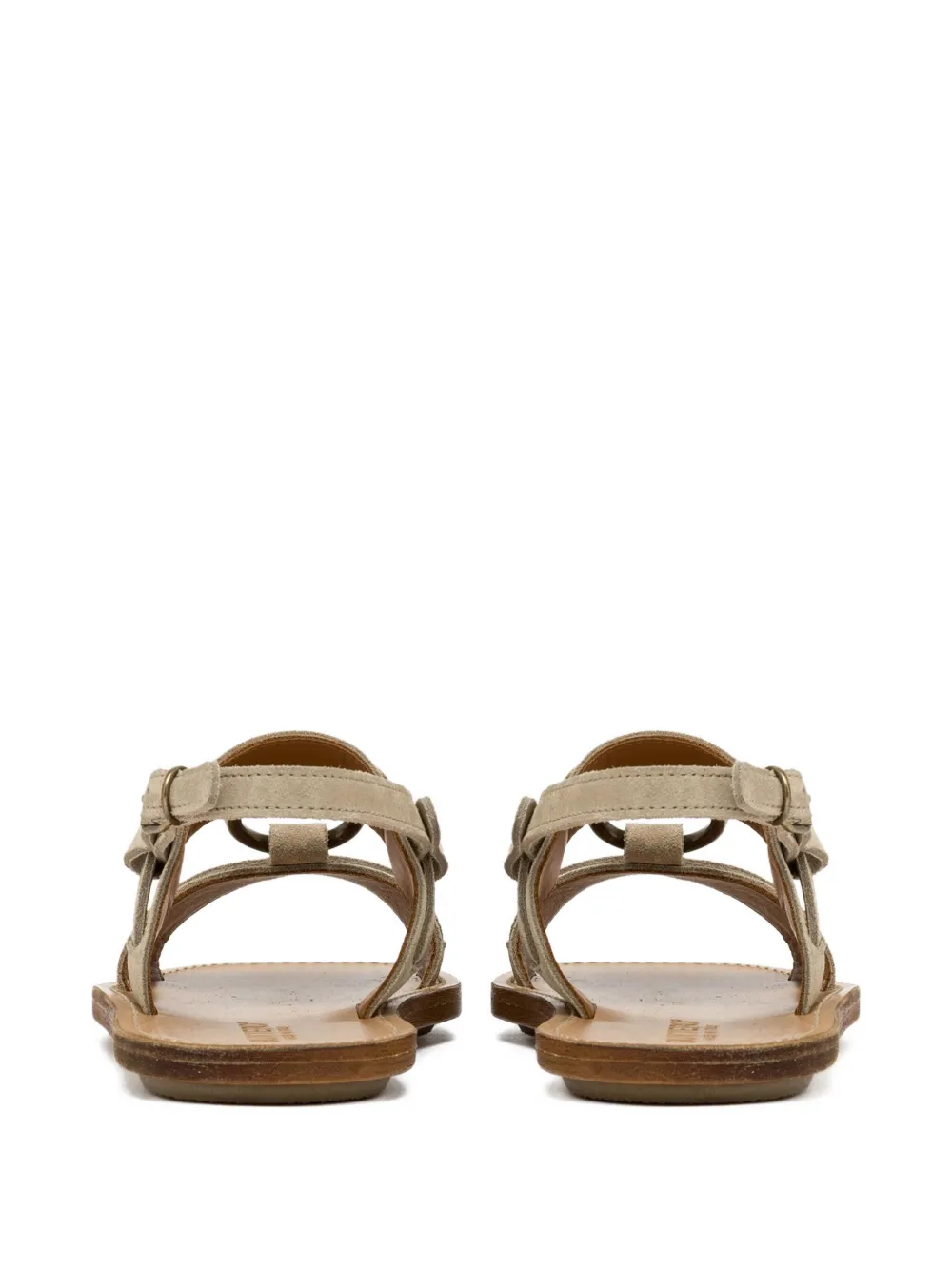 Серо-коричневый ремешок с застежкой-пряжкой, детали с кольцом, открытый носок, плоская подошва