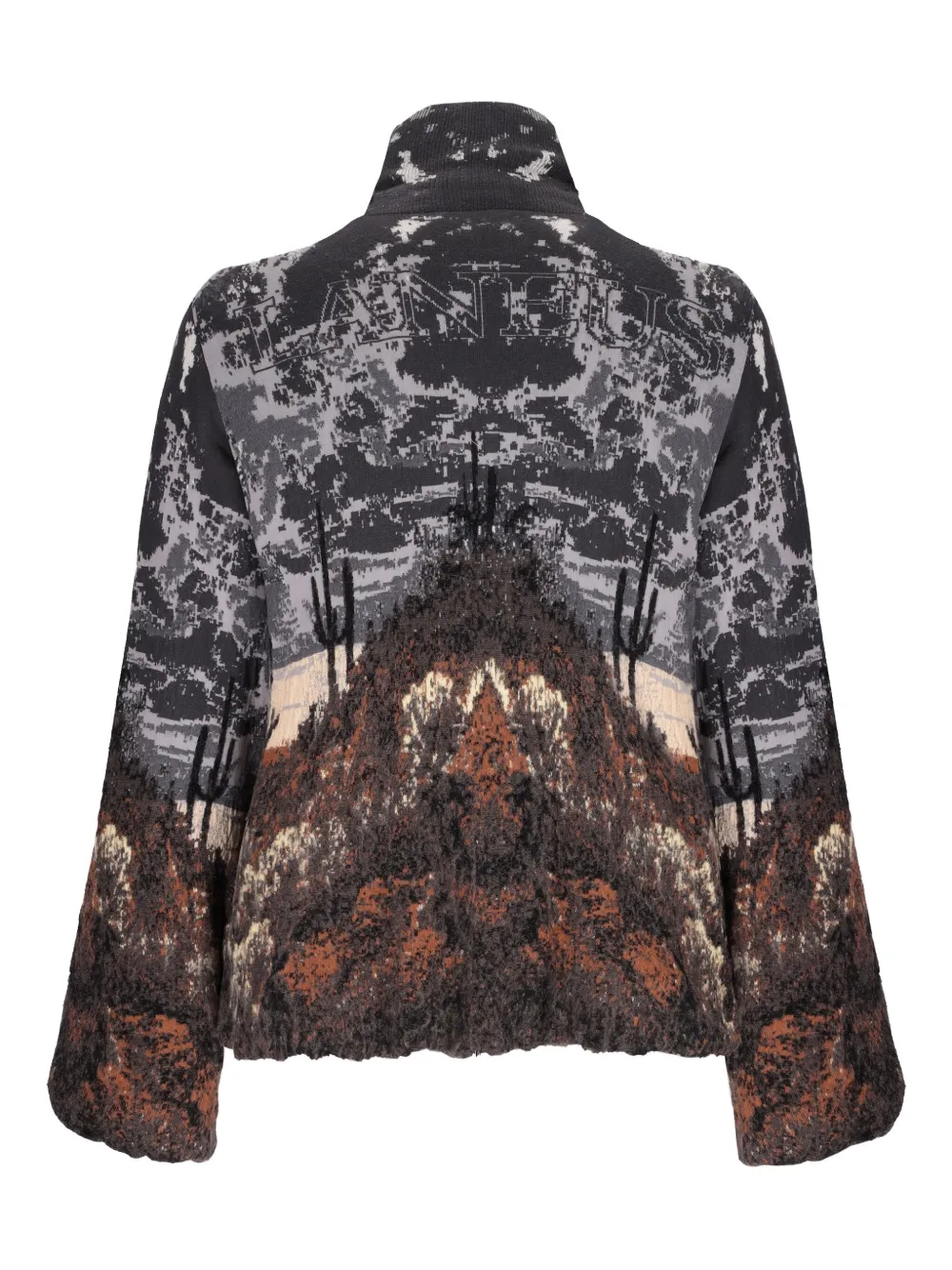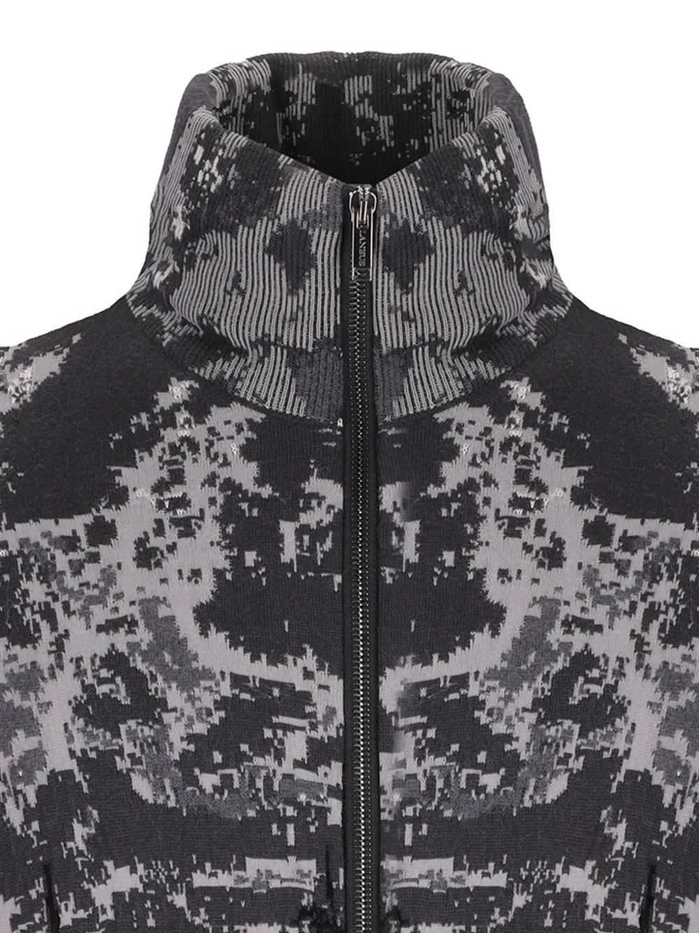 Серая вязаная конструкция, застежка-молния, высокий воротник, графичный принт, ребристые детали