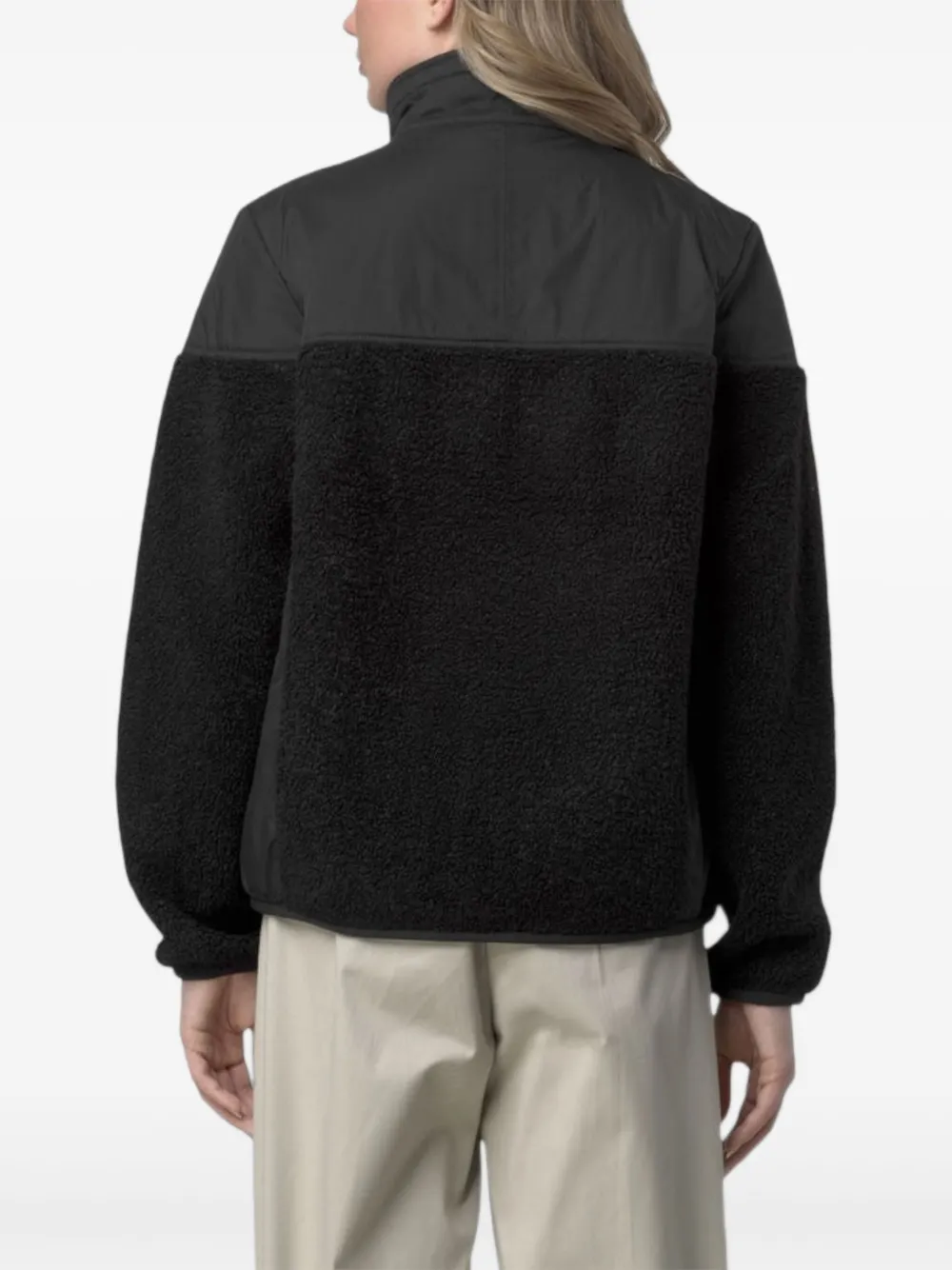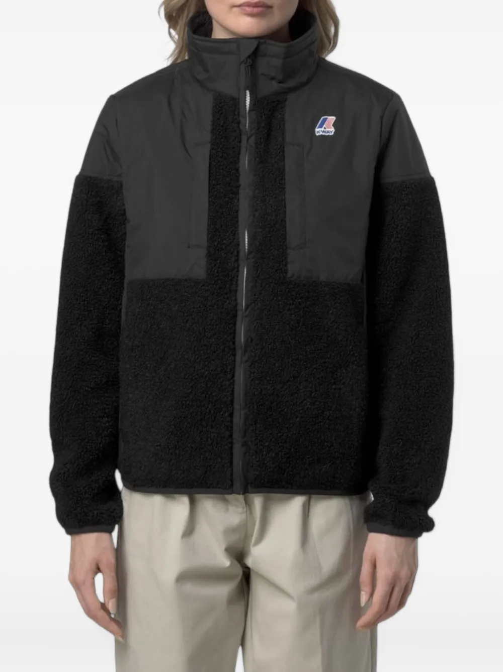 Черная куртка с панельным дизайном, застежкой-молнией, нашивкой с логотипом, высоким воротником и флисовой текстурой